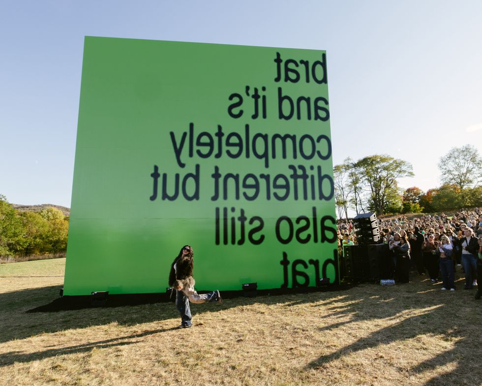 It is a chilly Thursday at Storm King Art Center in upstate New York. Late Wednesday, I’d randomly propositioned my editor with a wild pitch: drive the three hours to the semi-remote set of sculptural marvels the next day and figure out what, if anything, Charli XCX had planned. She’d announced the pop-up in the most casual way, like the Brat billboards back in June, during Pride, or the lackadaisical drop of the deluxe album soon after the original: “nyyyyyyy i want to play you my new album :) shall we go upstate ?”