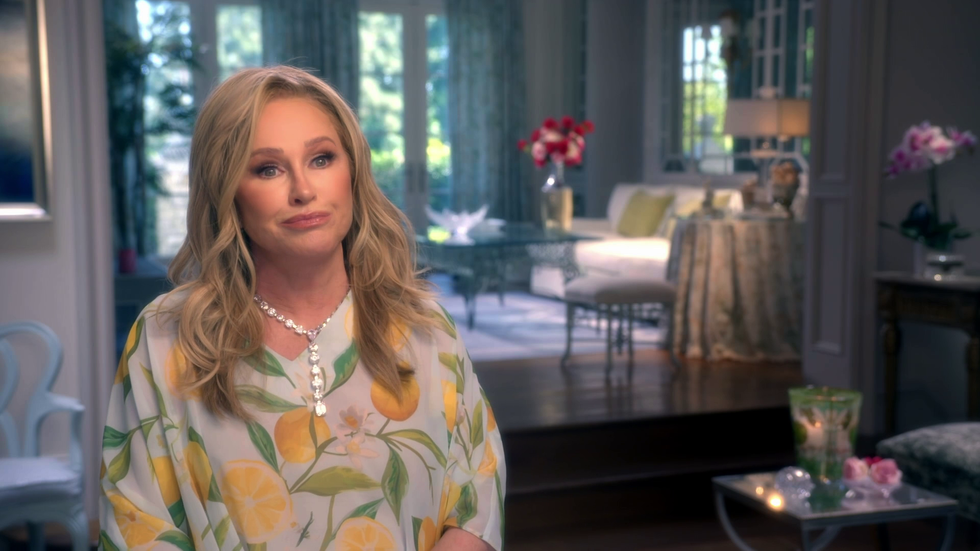This troublesome twosome showed up in a living room in matching drag. Both, it appears, are dressed up for Heather and Whitney’s aforementioned bingo night! In all seriousness, though, it's funny how these two refuse to ever be on the same page. Kathy is permanently stuck in the body of a kooky aunt who may or may not have murdered her husband in a mystery beach read, while Kyle is always dressed for the Freeform adaptation of The Valley of the Dolls. Yes, she's technically in her robe, but use that imagination, ok?