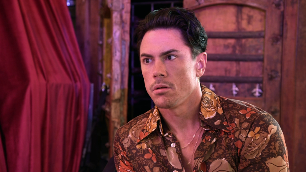 Both Vanderpump Rules and The Valley were light on outfits this week, so let’s pick on Tom Sandoval. There’s just about nothing to like with this shirt, and his male manipulator hoop earring doesn’t help. He looks like a blackjack dealer off the Vegas strip, of which I saw many this past weekend. Tom had his shot to work the floor of the Bellagio but couldn’t cut it, so they stuck him in Circa, where his goofy jewelry, white nail polish and black hair dye would go over well with the bachelorette parties and drunk college kids.