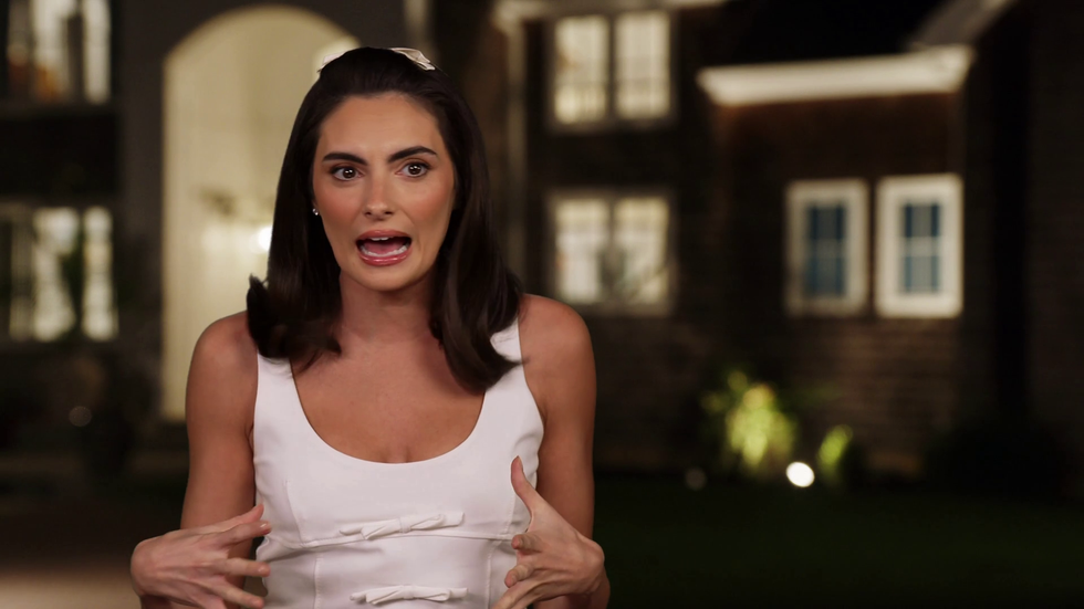 If there’s one thing I can count on from Paige, it’s dressing like she’s Jackie Kennedy if the former first lady knew what gaslighting and Botox were. This Amanda Uprichard dress is totally serviceable, if a bit reminiscent of the white trim we saw on Ally Lewber’s co-ord set last week. Is white trim on ‘60s inspired dresses a trend? Or is the styling pool on these shows just that small? Let me keep my eyes peeled.