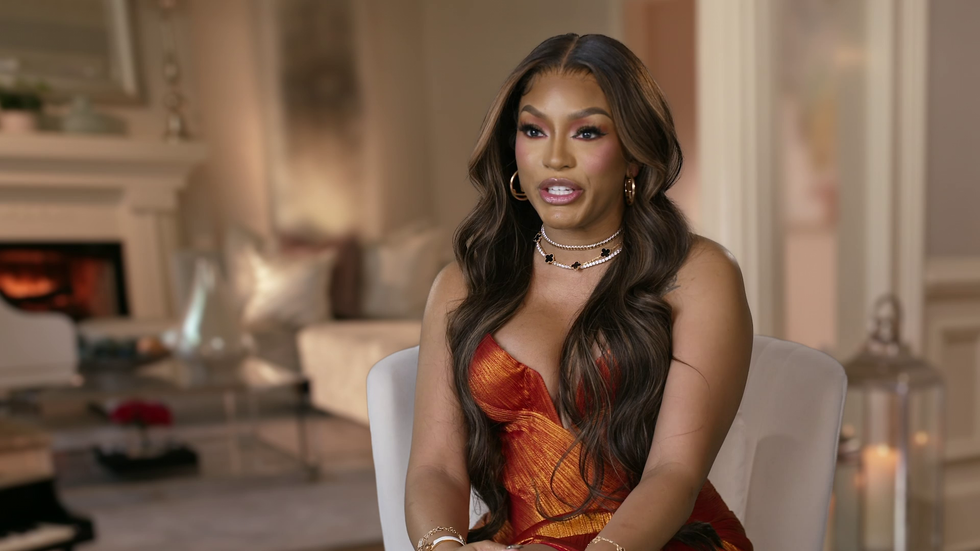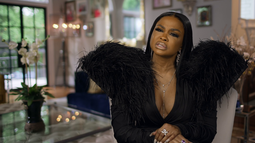 Phaedra’s never looked funnier, not on this show or the others she leapfrogged around while in exile. This outfit is, without a doubt, one of the stupider articles of clothing she could have chosen for the confessional, matching neither the budget of this cast or the tone of this franchise, Maybe in Dubai, where it seems she really wants to be, or Beverly Hills, where she could never be. But not in Atlanta, while Brit is traipsing around in Skims dupes from TJ Maxx.