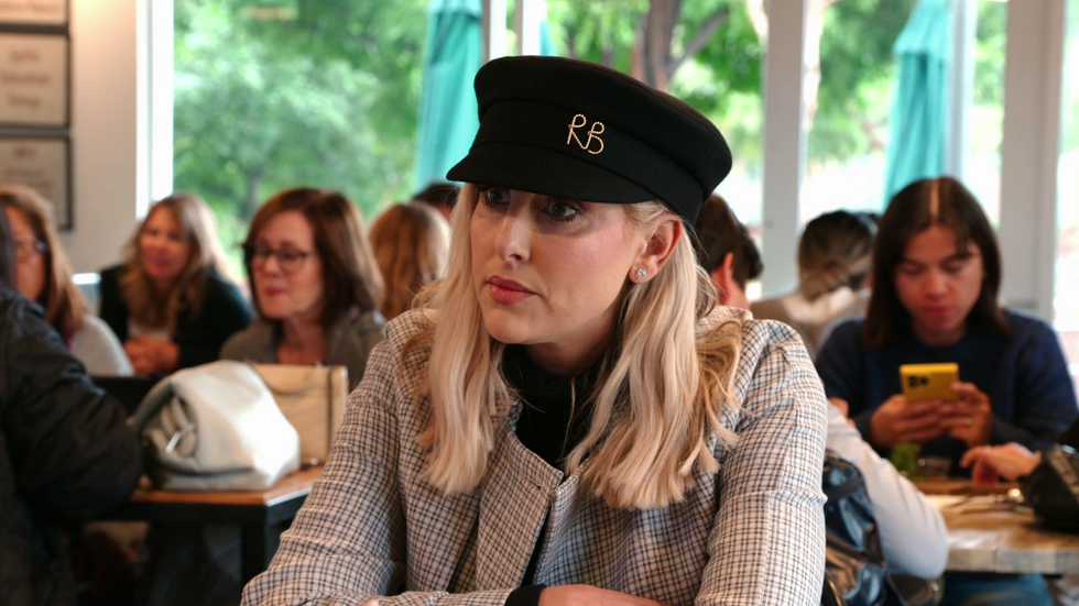 Miss Dubrow continues to dress like a villain on Desperate Housewives this season. Here she is in a little Prada button-up with contrast finishings and too much eyelash. Her commitment to the bit is admirable, if spooky, and I hope she continues to spiral deeper and deeper into the aesthetic until she’s literally the spitting image of Carolyn Bigsby. Remember Ms. Bigsby? She holds up a supermarket with her tiny little pistol and kills her husband’s mistress.