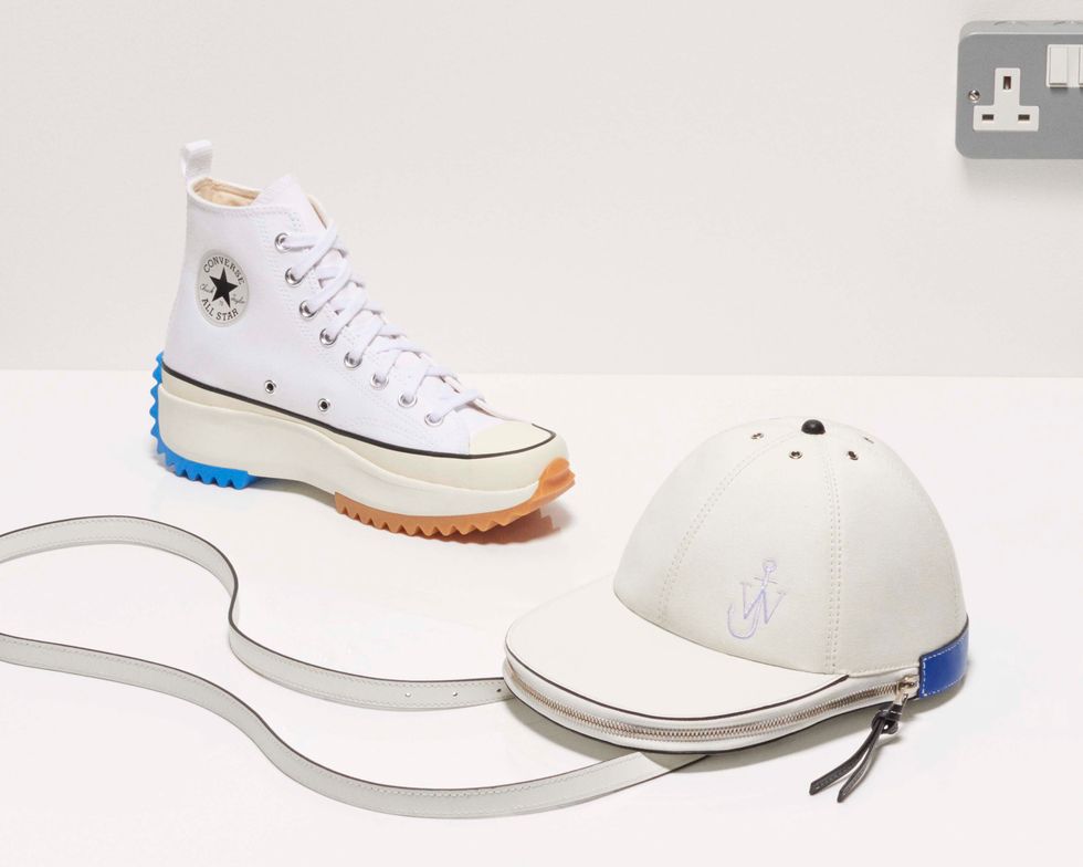 On his Fall 2019 runway show, Jonathan Anderson debuted a series of leather bags shapes like a baseball cap with a zip closure on the rim. Now, the brand has released its sportier American version in a chic canvas material. The designer was inspired by a trip he took to Boston, where he attended a Red Sox baseball game at the historic Fenway Park. A double-header sees the cap bag pair nicely with the JW Anderson x Converse Run Star Hike, which is rendered in similar materials and colors.