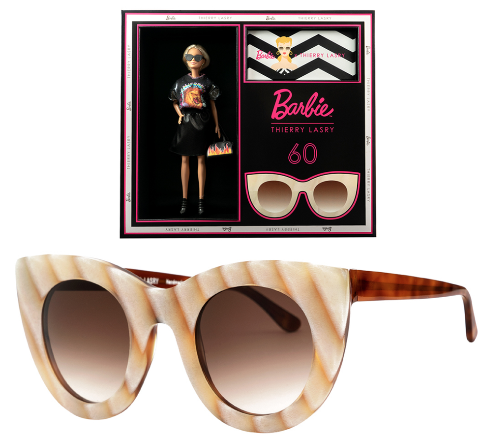 Barbie is turning 60 this year, and is keeping the celebrations going by partnering with one of fashion's most renowned eyewear designers Thierry Lasry. Known for his sculptural frames with a "futuristic vintage" feel, the Frenchman applies the same rigor of craftsmanship to this limited-edition capsule, which consists of an exclusive collector's box featuring a chic Barbie or Ken styled by Lasry and a pair of elegant, oversized cateye sunglasses made in France.