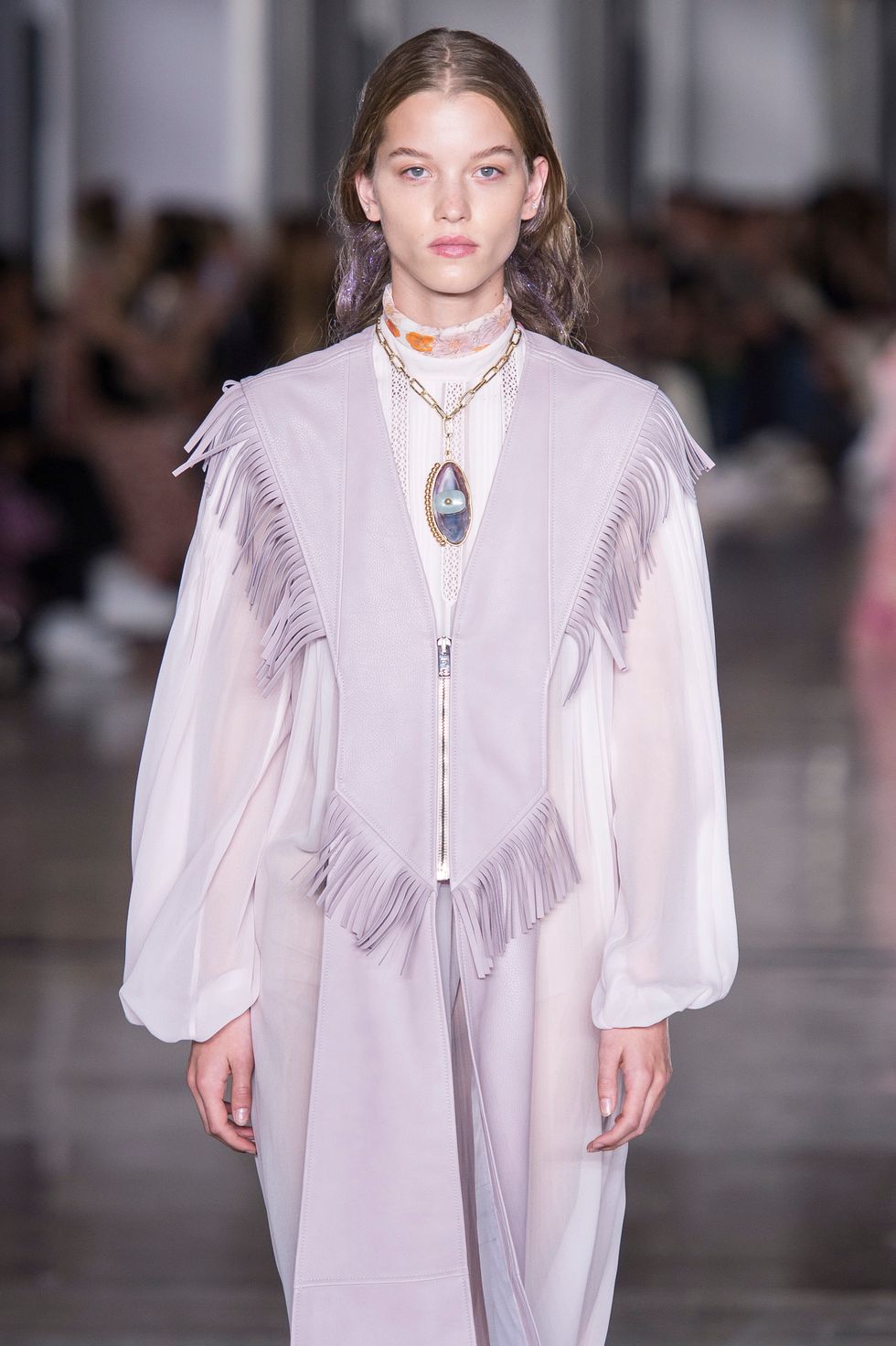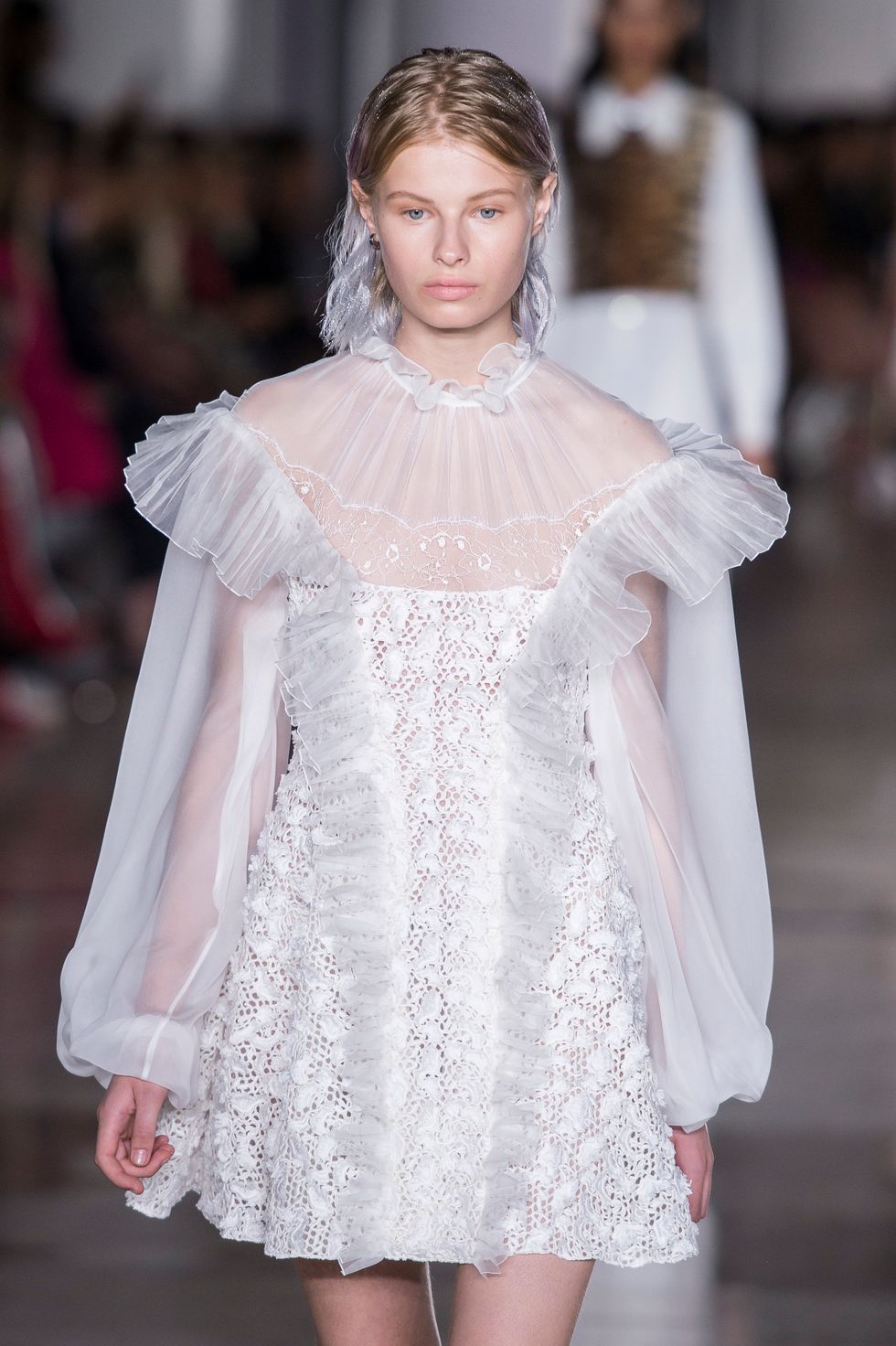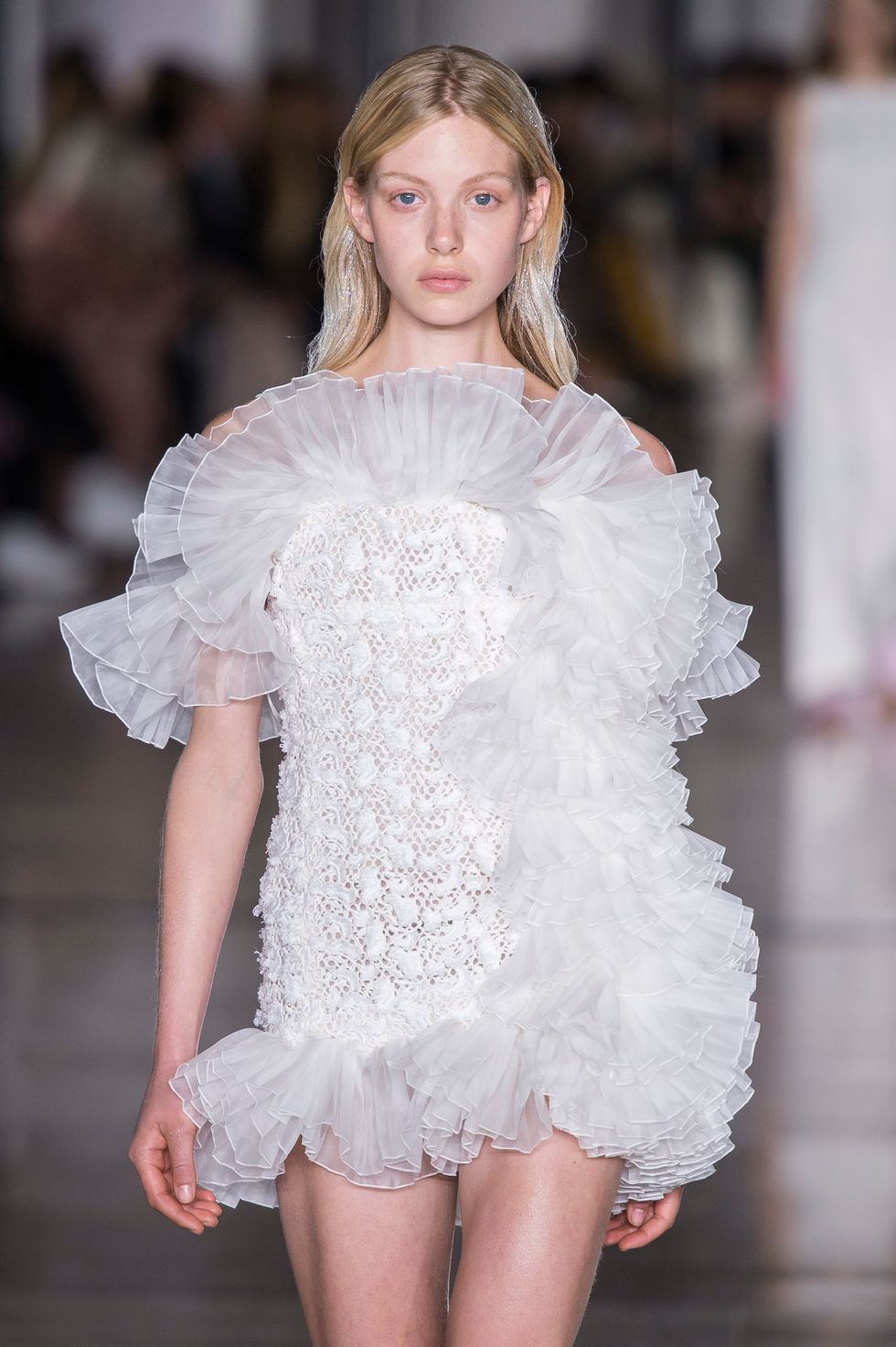 For Giambattista Valli's spring 2019 collection at Paris Fashion Week, the Italian designer paired bold prints, fine floral embroidery, ruffles galore and dusty pastels with hair that was beautifully sci-fi.