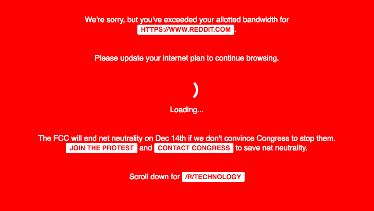 Sites like Reddit, Kickstarter and Etsy have put up interminable loading pages to show what it could be like with slower download speeds should the net neutrality repeal pass: