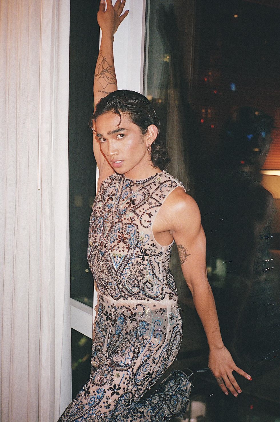 He's since been a magnet for photographers at events and shows, wearing everything from vintage Roberto Cavalli to emerging designers like Robert Wun. His looks are androgynous, avant-garde, provocative and unabashedly sexy. He attributes the success of his new fashion journey to stylist Brian Meller, who he started working with this summer.