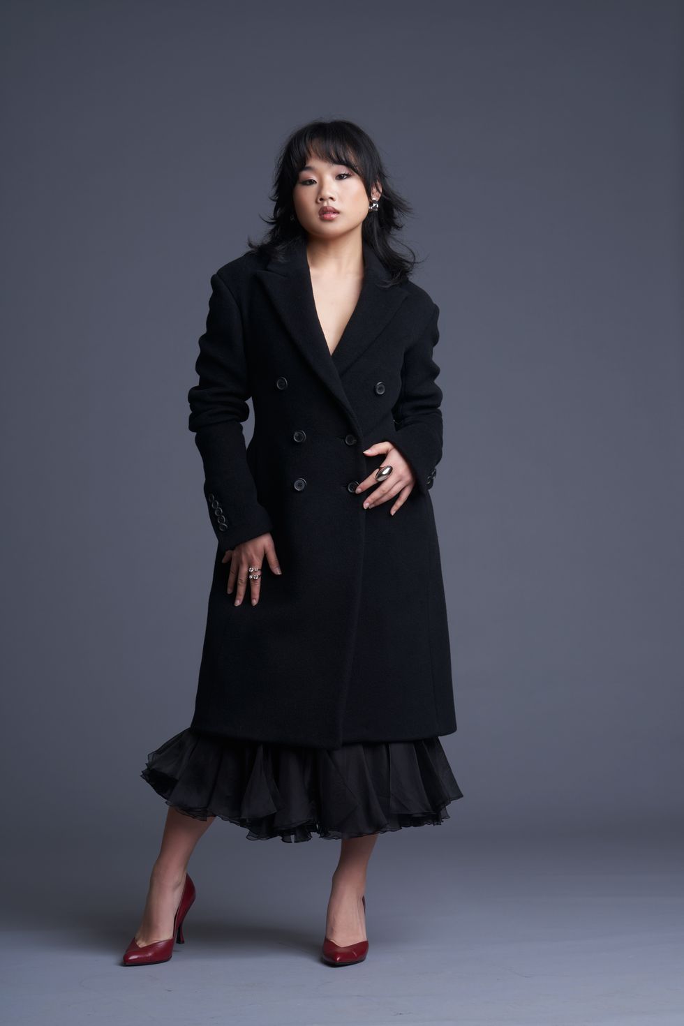 Coat and skirt: Shushu/tong, Jewelry: Alexis Bittar