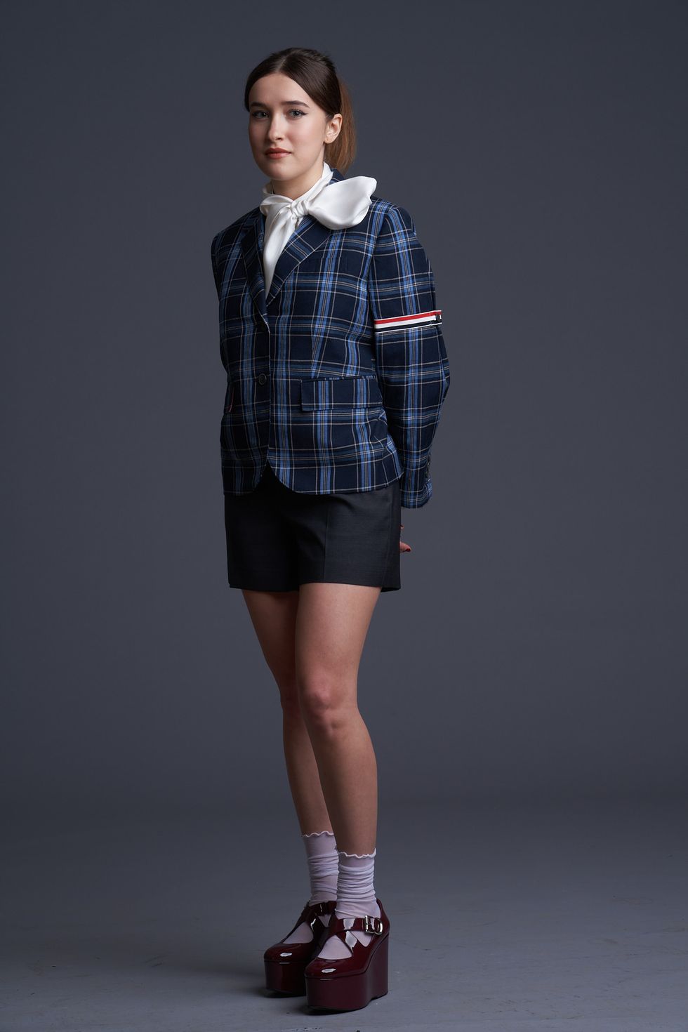 In the future for the young actress? “I’d love to be in Hamilton. But I’m open to anything!”Top and jacket: Thom Browne, Shorts: Gucci, Shoes: Alaia, Socks: Free People