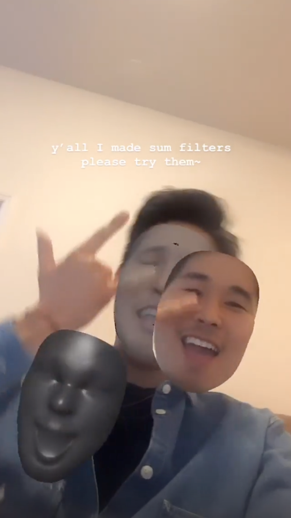 I'll get ideas randomly, so I keep a list on my phone. It's way longer than I could actually accomplish, but it helps me sort things out. These ideas can come from anywhere and many of them actually come from my friends. The weird faces that they make or the the energies they exude. I recently released a filter inspired by the makeup looks of drag performer Mahal Kita. My next inspiration is my friend's obsession with clouds, so keep a look out for that! Once I have an idea though, I get into execution mode where I become very action oriented. I flesh out a plan on how to execute and when I can put in the time. Life gets busy, so I find that being intentional with my time helps me be the most productive.