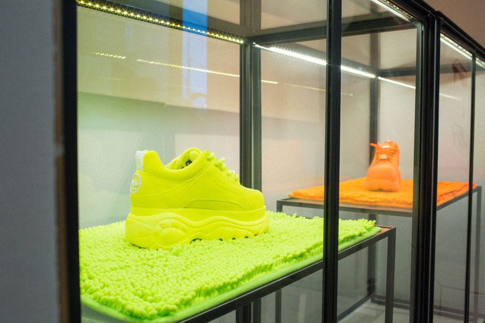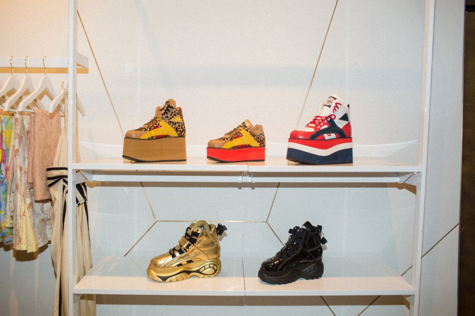 This week, iconic shoe brand Buffalo London previewed their newest line, many of which were remakes of shoes popularized by the Spice Girls. They are characteristically clunky, and come in a range of colors and prints from pastel pink and blue to neon orange and green to leopard print and metallic gold. The event was also fashion mainstay Jazelle Z's debut as a DJ.