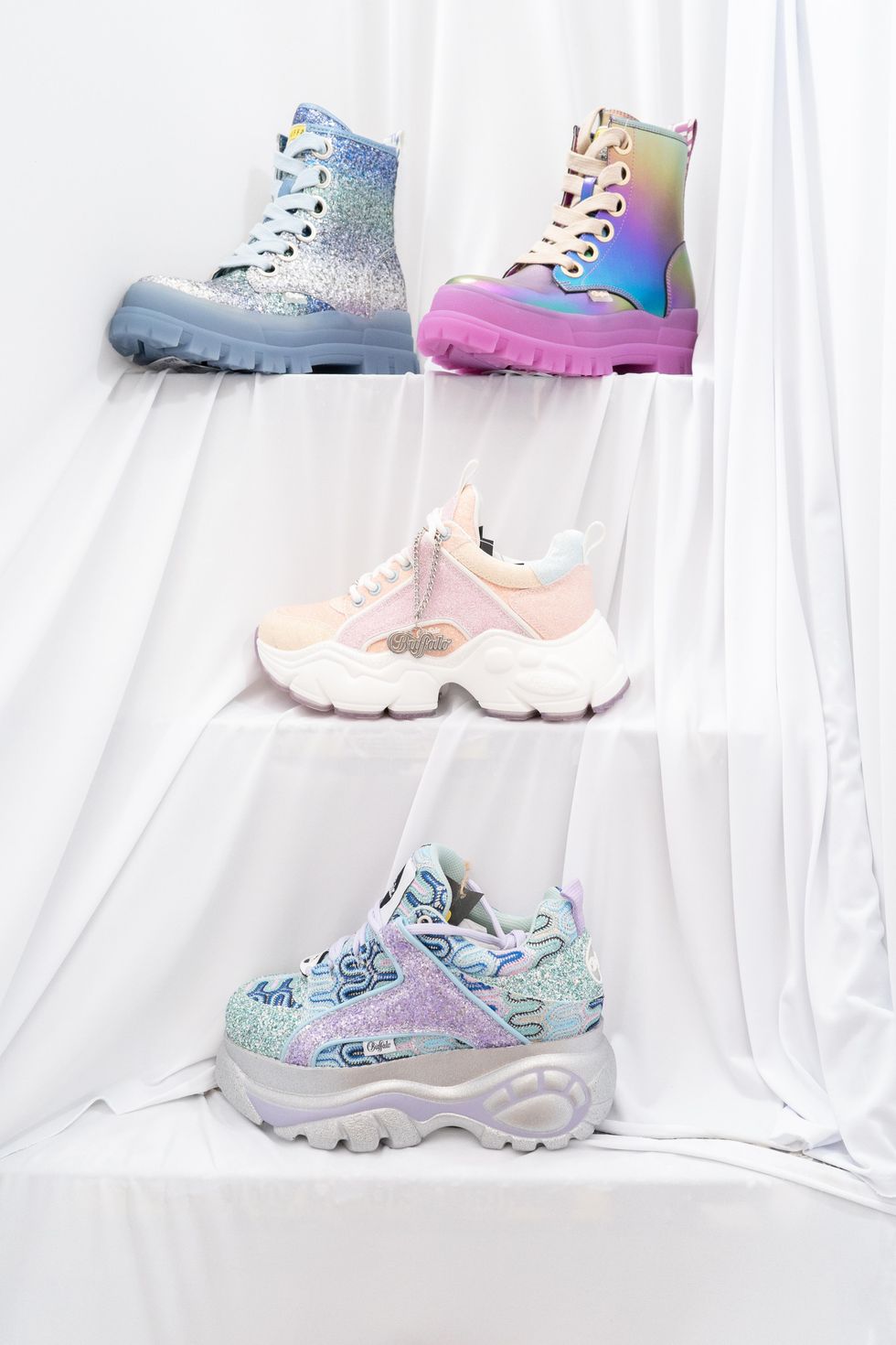Fresh off recent collaborations with 032c, Junya Watanabe and Vivienne Westwood, Buffalo London has arrived in New York to present its latest project: the Buffalo Studio Art Foundation. Founded in Germany in 1978, Buffalo London has been a fixture of fashion and pop culture for decades, especially across Europe and Asia. The brand’s platform athletic sneakers became synonymous with rave culture in the '90s (and the Spice Girls!) and continue to influence club style today.