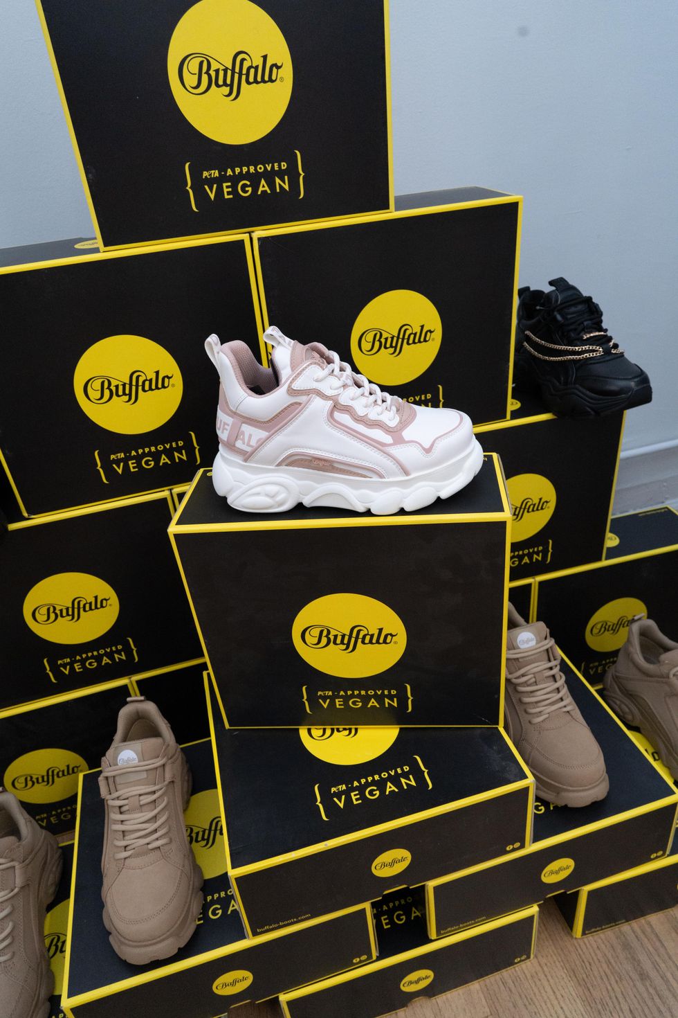On Wednesday night at the Black Trading showroom in Soho, Buffalo London celebrated the new foundation and launch of their Spring 2023 shoe collection, with nightlife personalities and plenty of champagne. True to the brand's subversive legacy, the latest lineup features bold color options, chain accessories and signature chunky silhouettes.