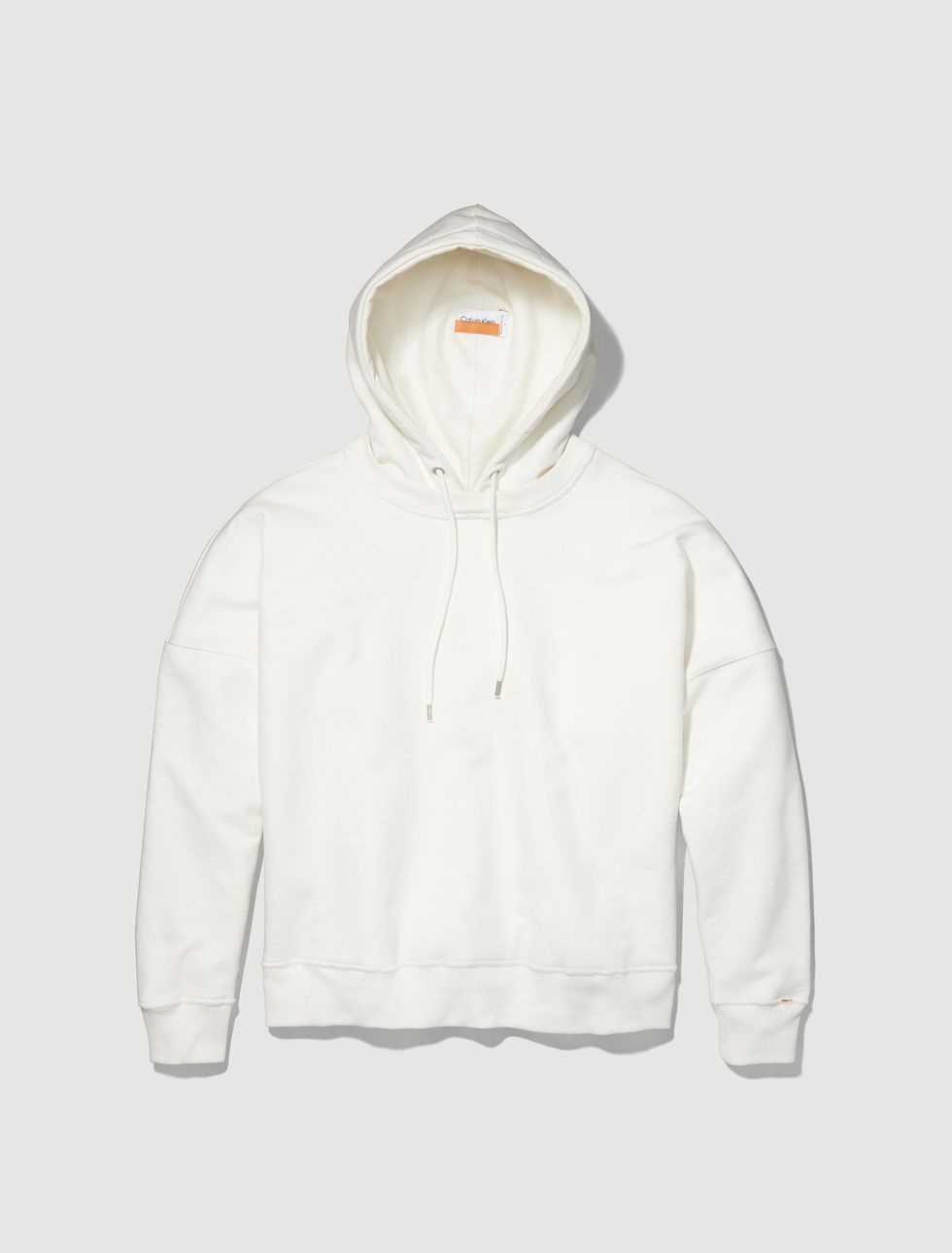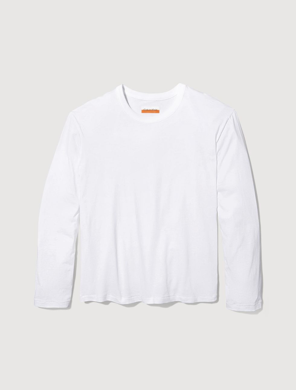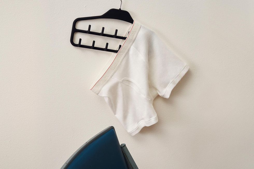 Preston's storytelling brings the American brand's staples to the forefront, from the clean white palette to everyday sweatshirts, hoodies, denim and undergarments. His obsession with impeccably-cut silhouettes and trademark details in revisiting the from-the-vault CK styles has brought something new to table: gussets under t-shirts, 3D-ish raised ribbing and stitching, along with some familiar interior and exterior tropes of branding across the collection.