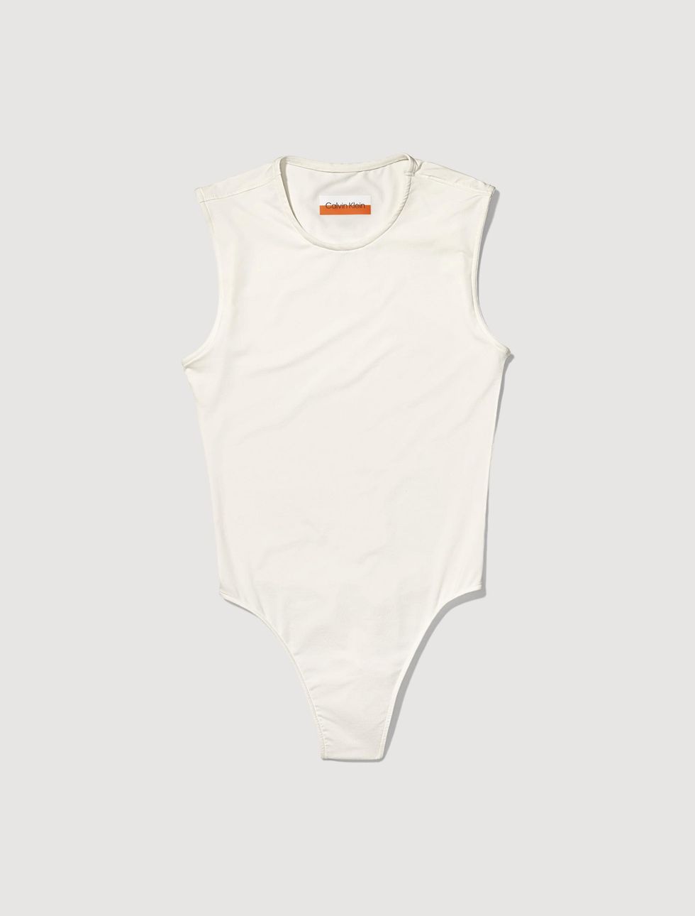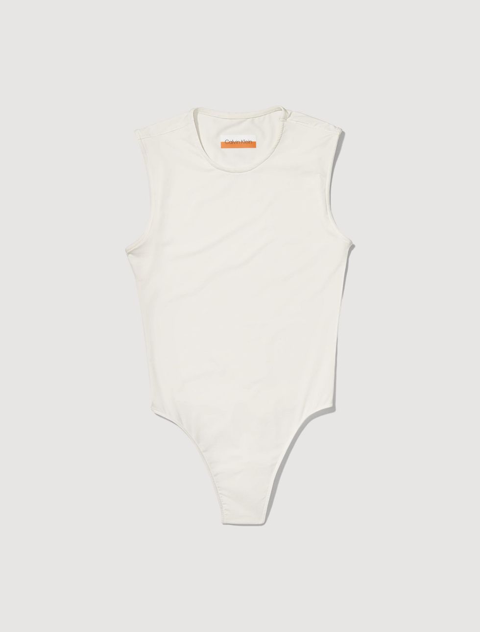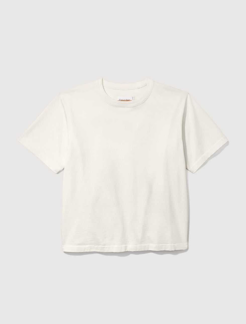 Preston's storytelling brings the American brand's staples to the forefront, from the clean white palette to everyday sweatshirts, hoodies, denim and undergarments. His obsession with impeccably-cut silhouettes and trademark details in revisiting the from-the-vault CK styles has brought something new to table: gussets under t-shirts, 3D-ish raised ribbing and stitching, along with some familiar interior and exterior tropes of branding across the collection.