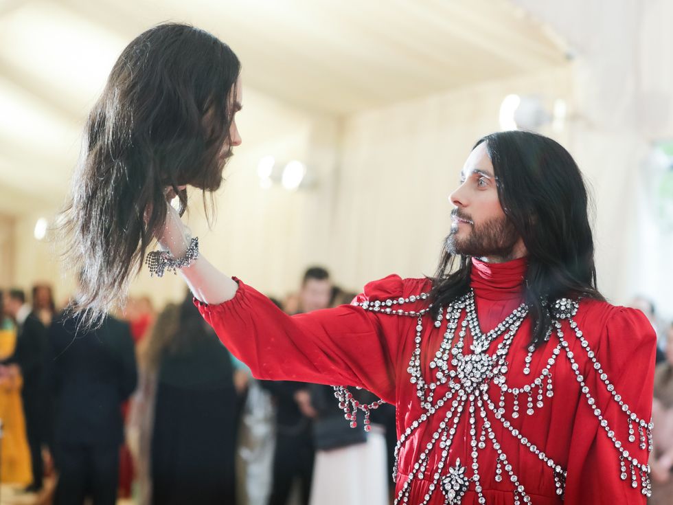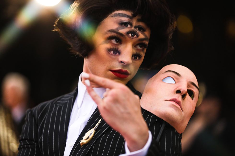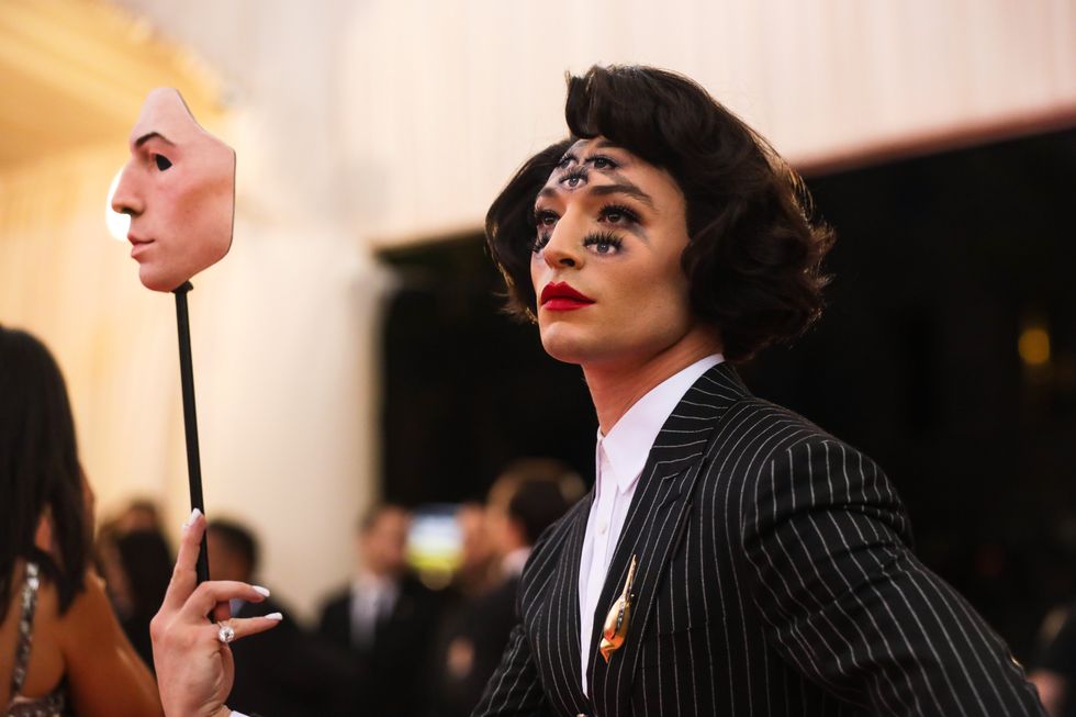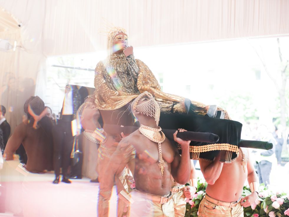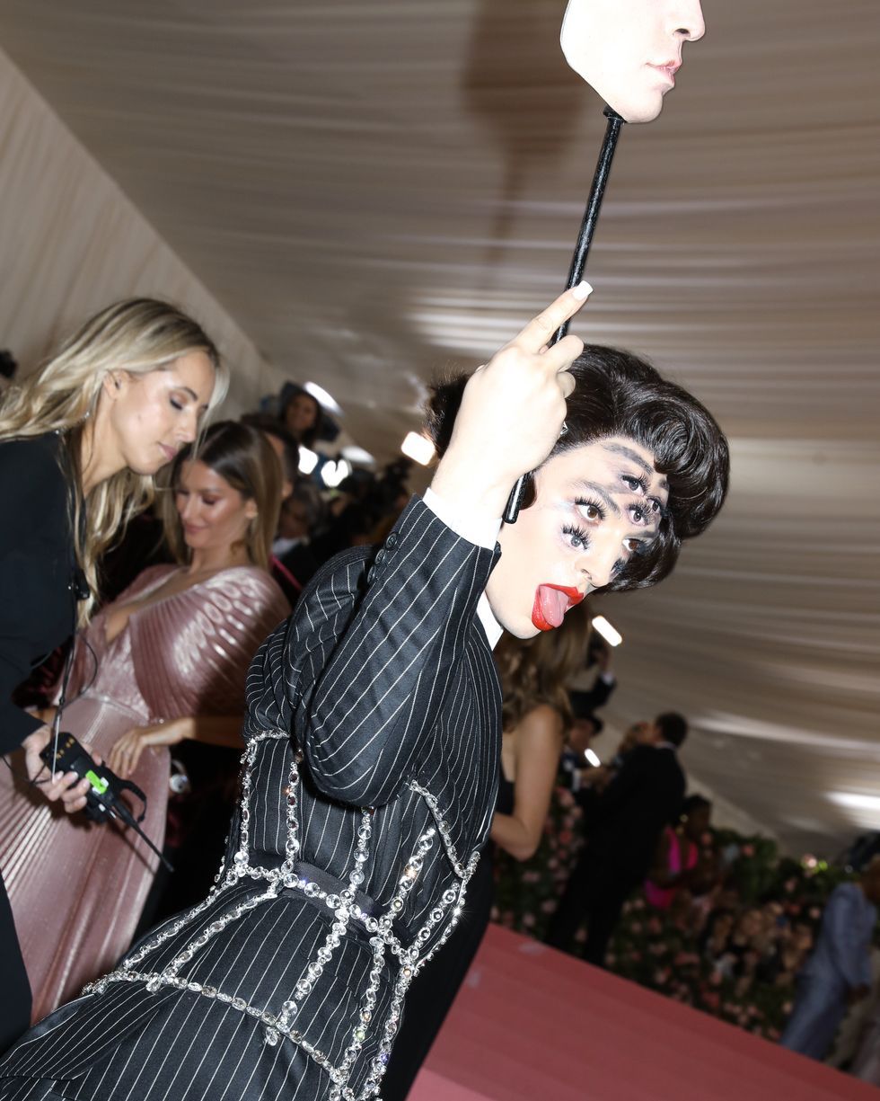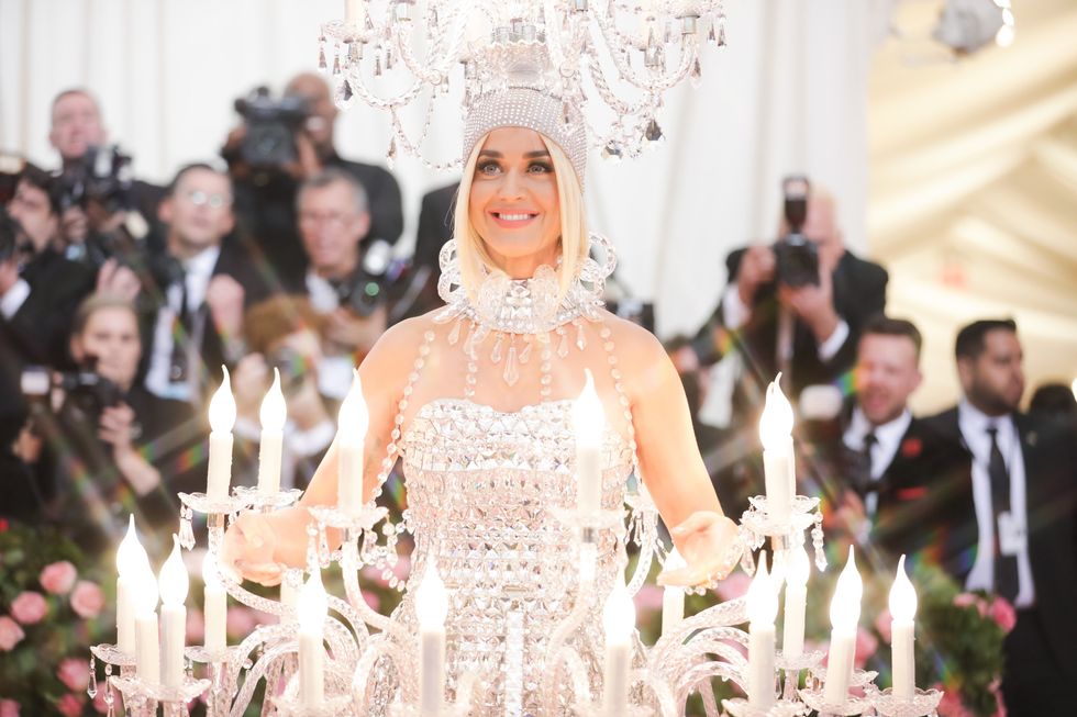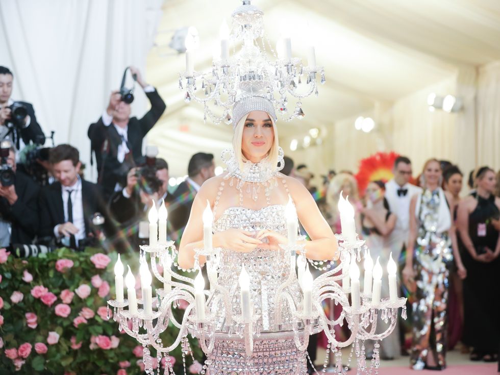 This year, guests were told to take notes from Susan Sontag's 1964 essay on Camp ("love of the unnatural: of artifice and exaggeration"), and many successfully pushed their red carpet moments to the edge, whether that meant carrying an exact replica of their head as an accessory (Jared Leto), unveiling four outfit changes (Lady Gaga), or dressing as a literal Chandelier (Katy Perry).