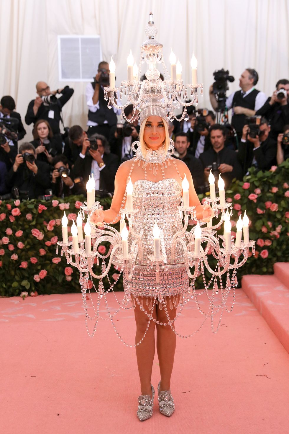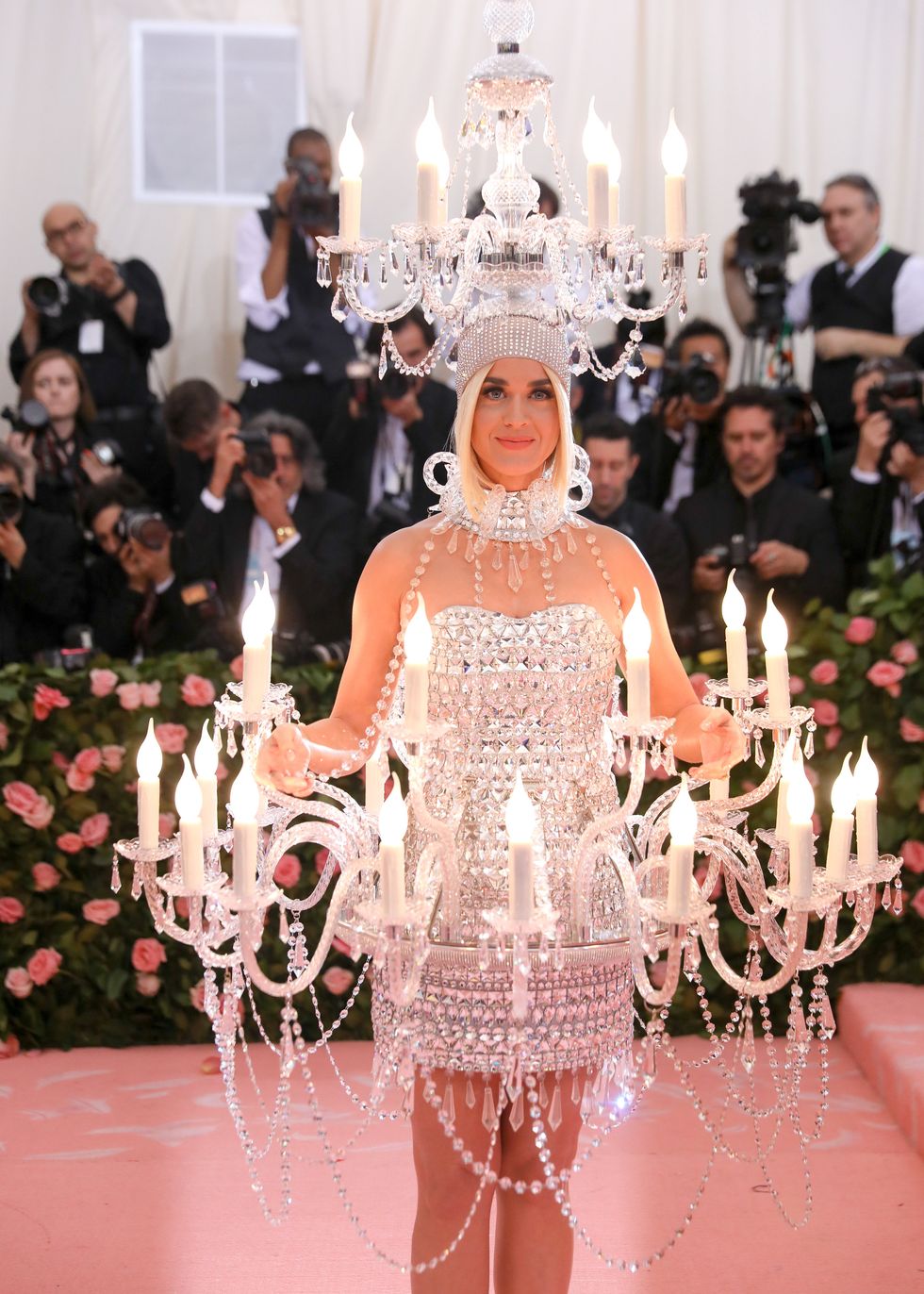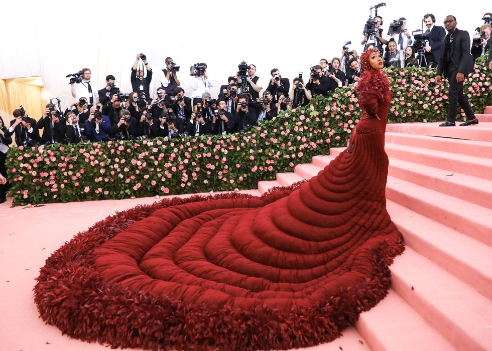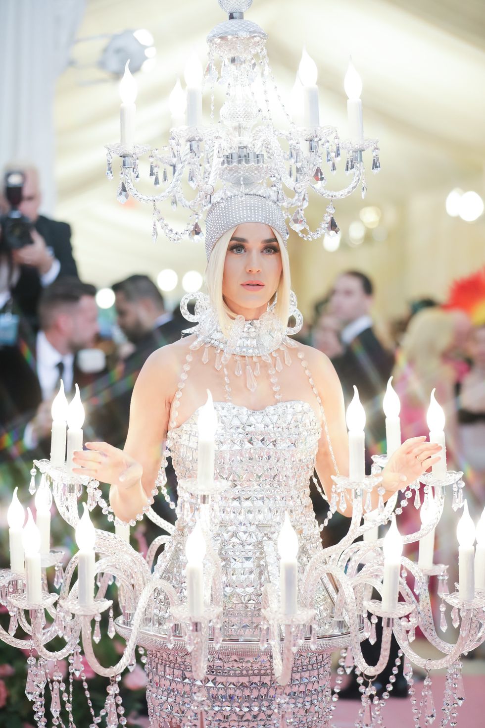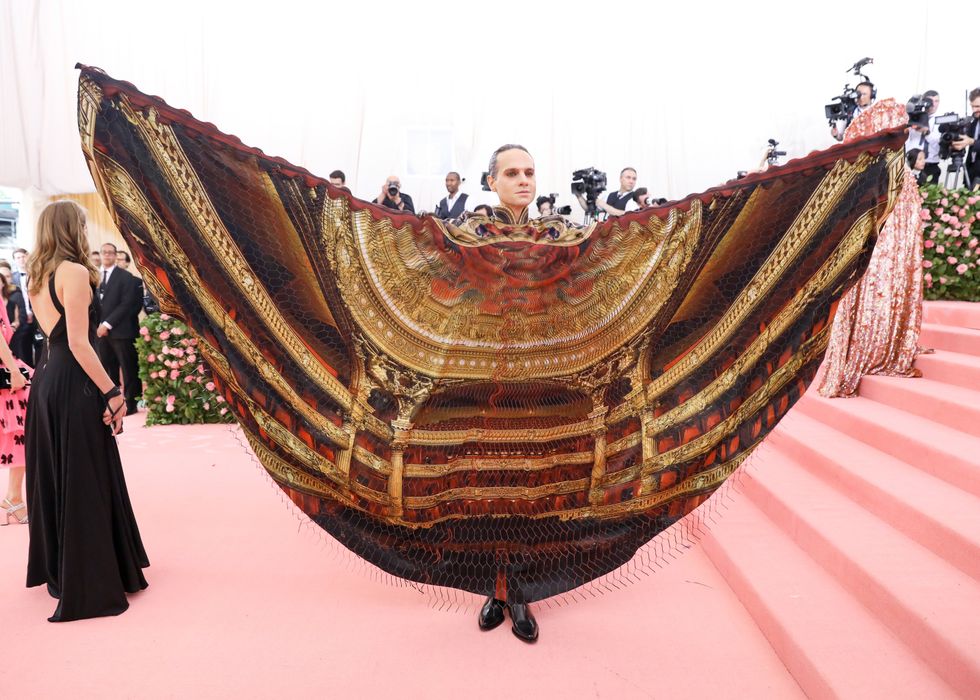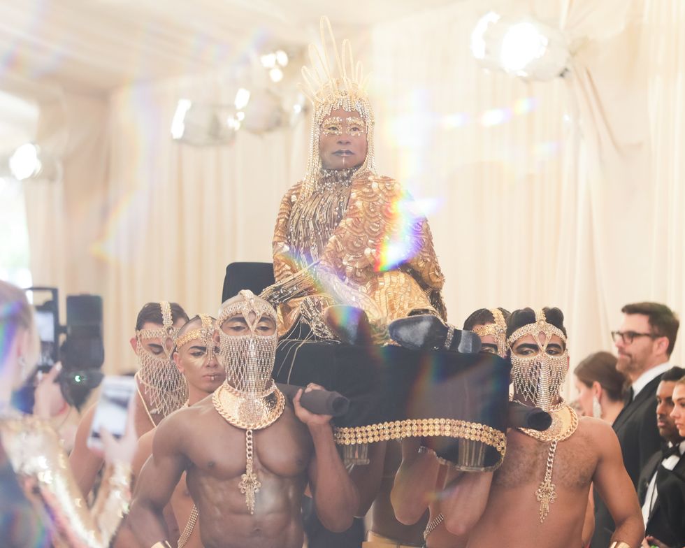 This year, guests were told to take notes from Susan Sontag's 1964 essay on Camp ("love of the unnatural: of artifice and exaggeration"), and many successfully pushed their red carpet moments to the edge, whether that meant carrying an exact replica of their head as an accessory (Jared Leto), unveiling four outfit changes (Lady Gaga), or dressing as a literal Chandelier (Katy Perry).