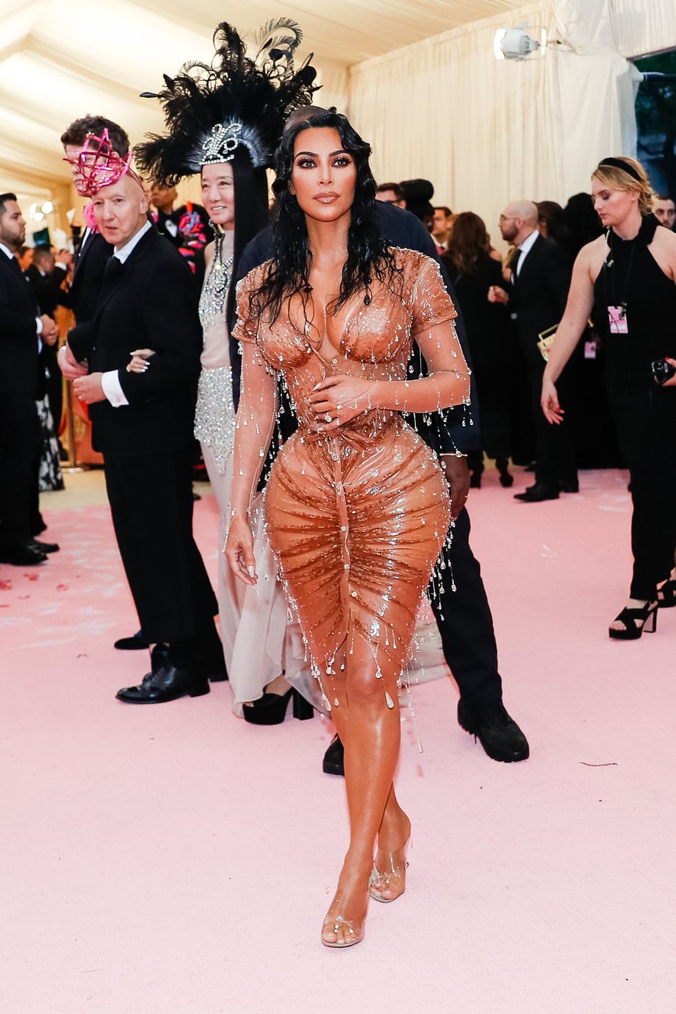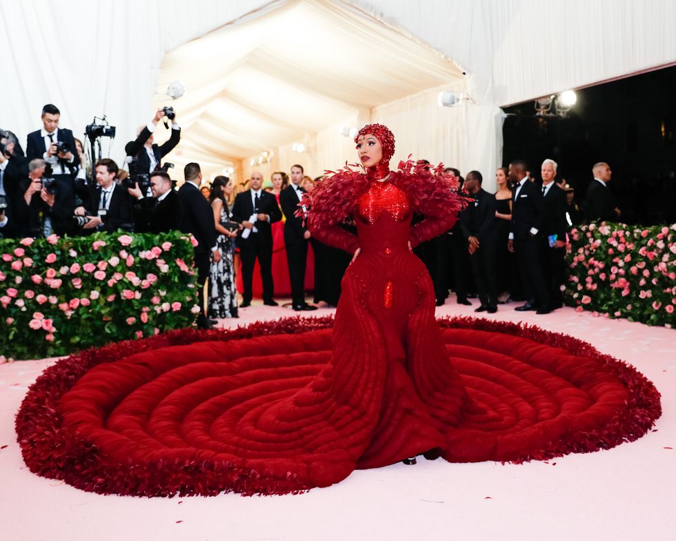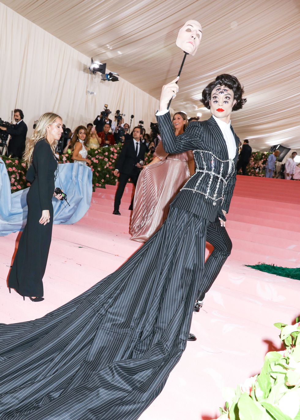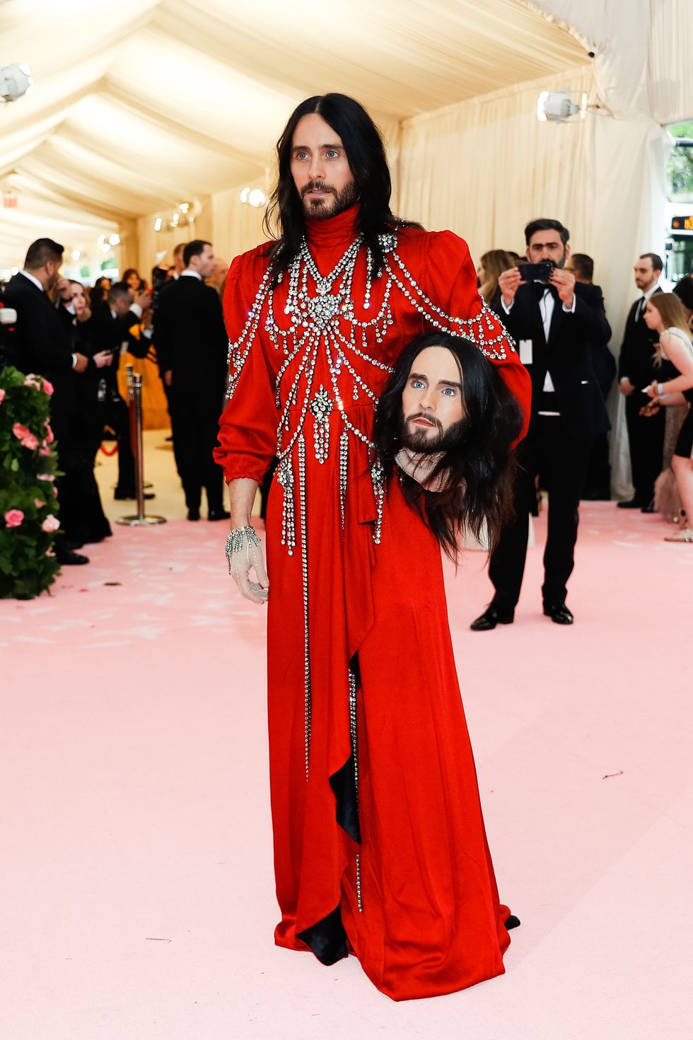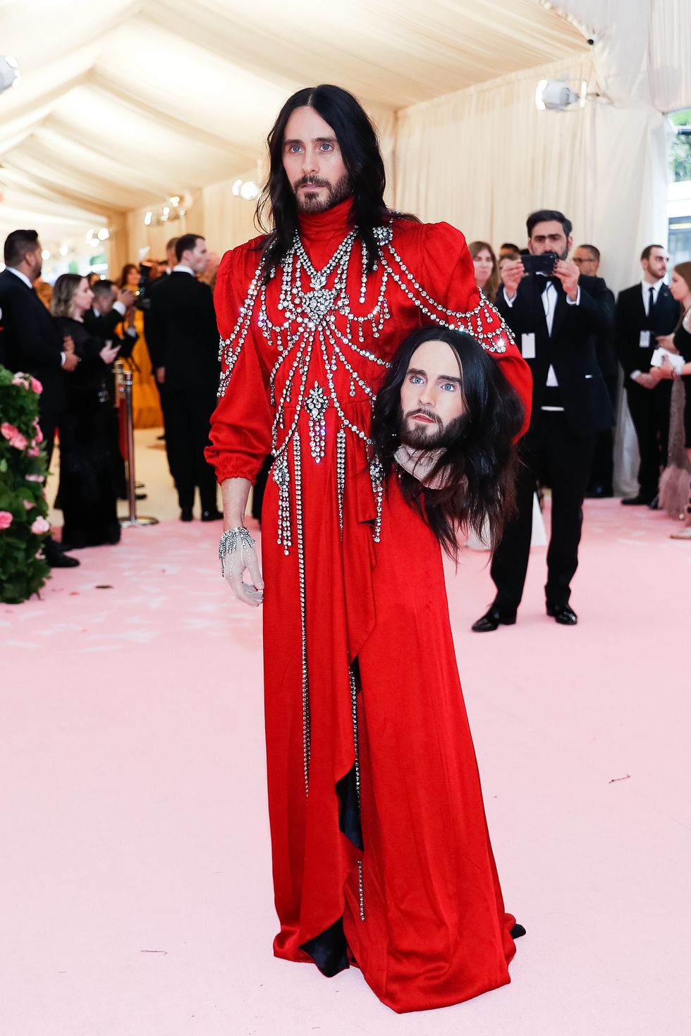 This year, guests were told to take notes from Susan Sontag's 1964 essay on Camp ("love of the unnatural: of artifice and exaggeration"), and many successfully pushed their red carpet moments to the edge, whether that meant carrying an exact replica of their head as an accessory (Jared Leto), unveiling four outfit changes (Lady Gaga), or dressing as a literal Chandelier (Katy Perry).