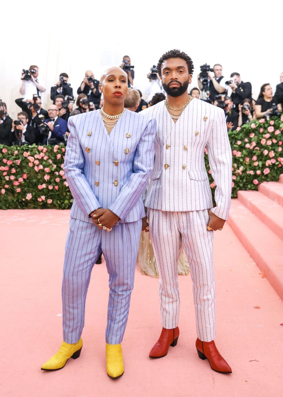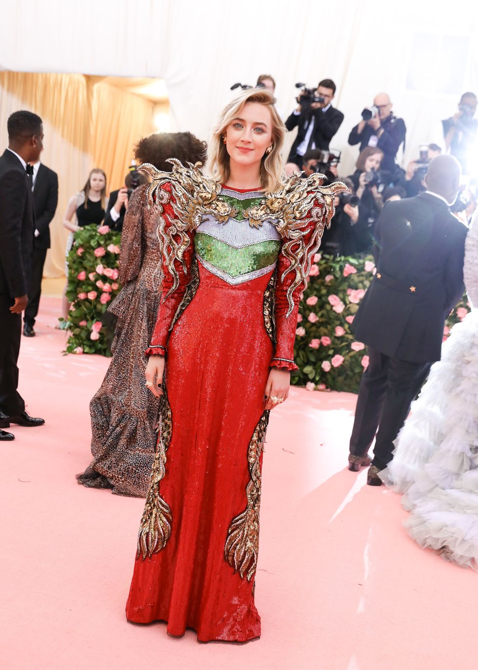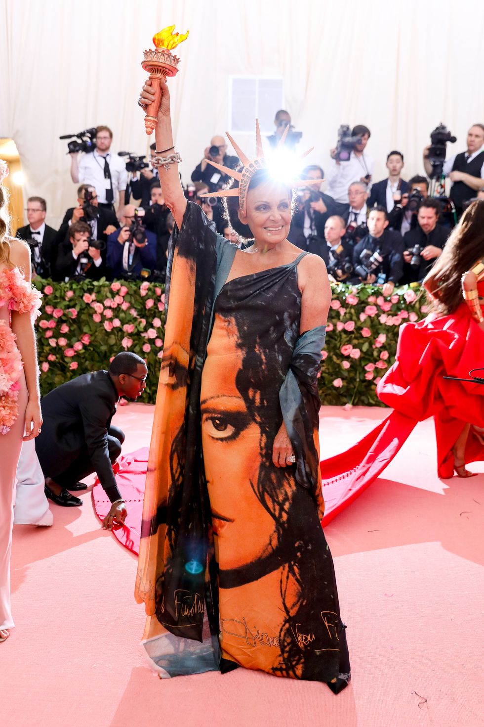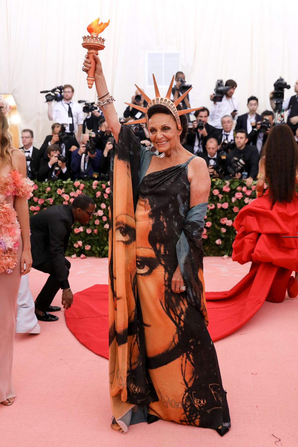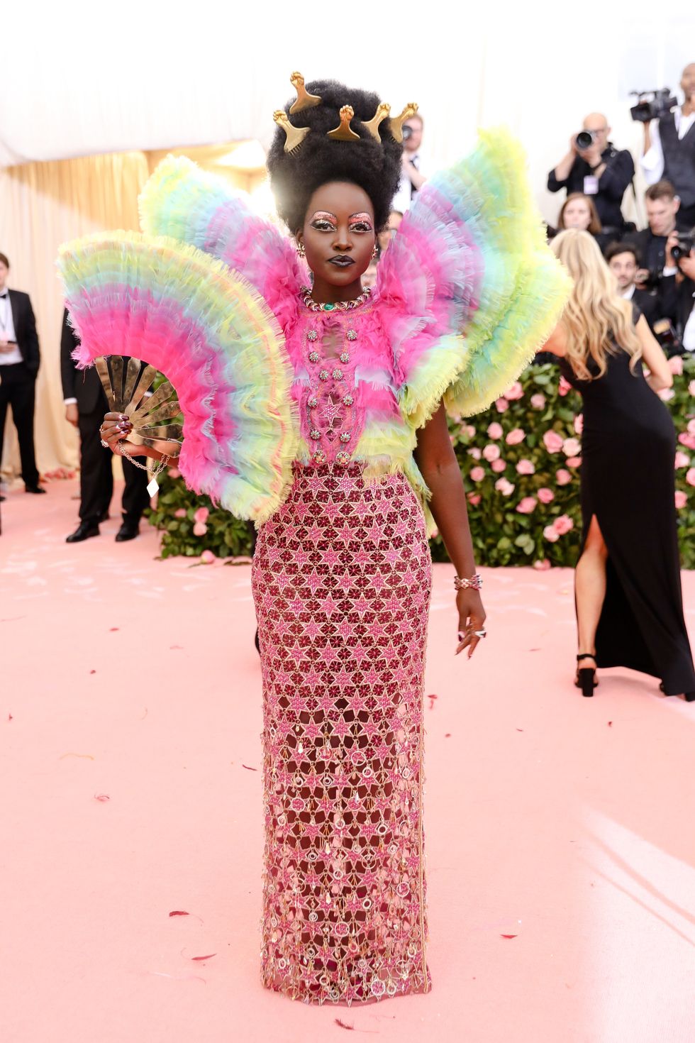 This year, guests were told to take notes from Susan Sontag's 1964 essay on Camp ("love of the unnatural: of artifice and exaggeration"), and many successfully pushed their red carpet moments to the edge, whether that meant carrying an exact replica of their head as an accessory (Jared Leto), unveiling four outfit changes (Lady Gaga), or dressing as a literal Chandelier (Katy Perry).