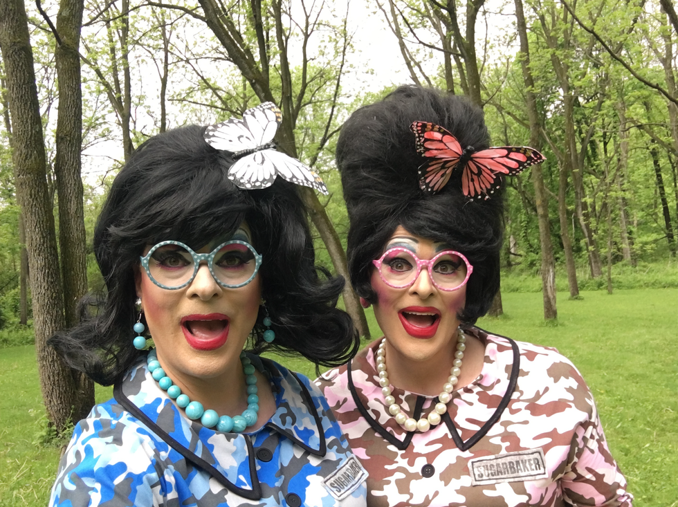 Ashley: Because we were so busy focusing on the production that sometimes — I'm looking at the footage and I'm like, Oh my gosh, my hat's on backwards. But it also lends to the wackiness that you've got these two, we're the camp directors, and we're just these crazy, kooky drag queens that don't take ourselves too seriously.