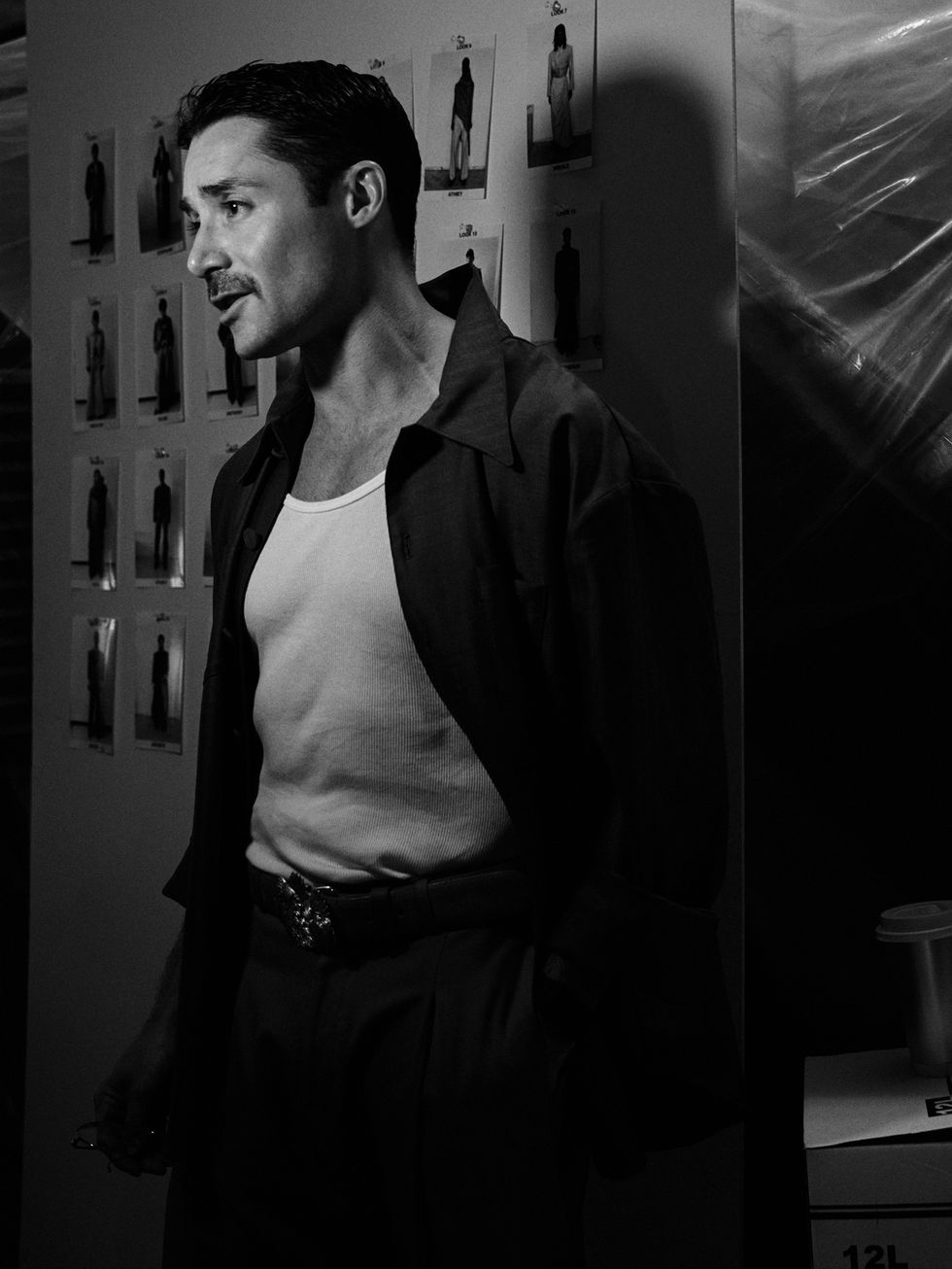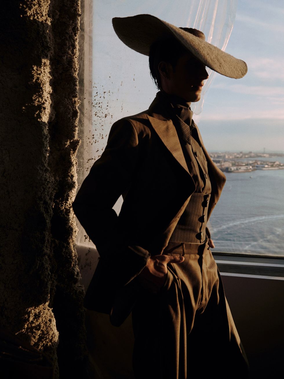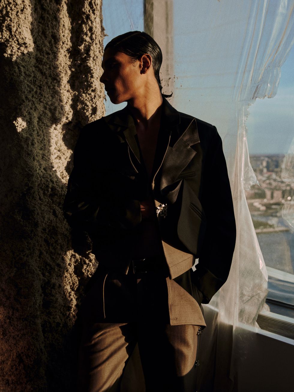 On the day we met, Patricio Campillo was wearing a look of his own design — skillfully tailored, quintessentially Campillo, featuring a golden set of aviator eyeglasses and Dries Van Noten shoes. In the Ridgewood studio that served as the staging ground for Fall 2025’s collection “Fictions of Reality,” a proverbial garden of coffee flowers was splayed across sleeves, coats, and collars.