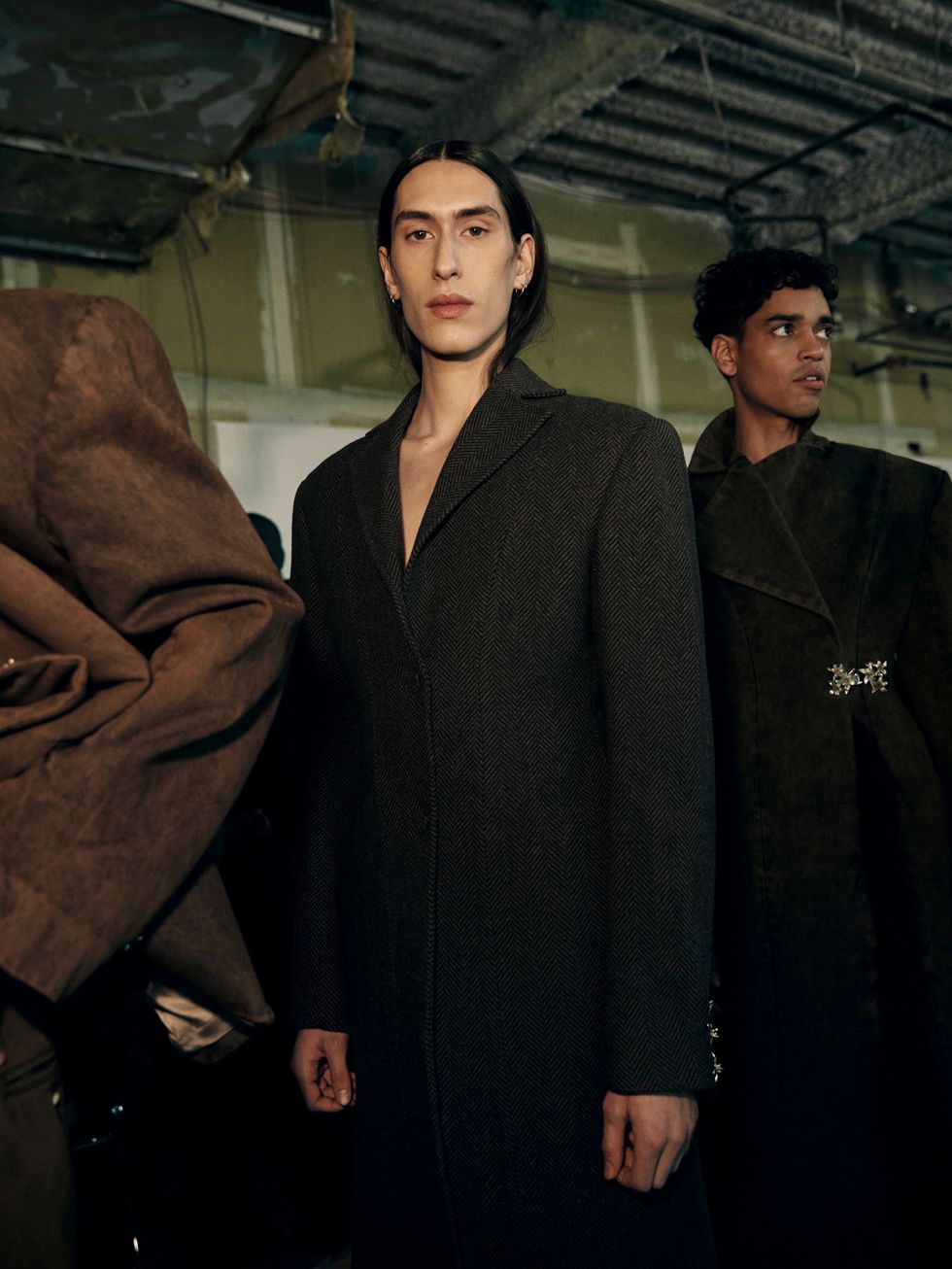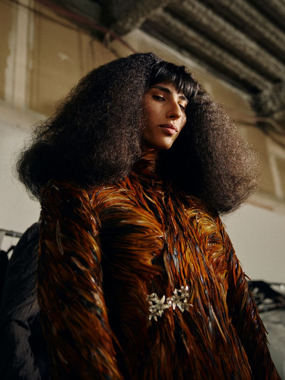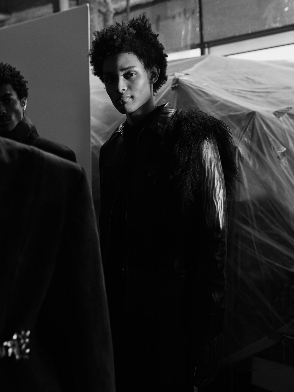 “This season was about increasing the level of craft that we put into each of the clothes,” Campillo told PAPER. A watchful eye on show day would have noticed a unique type of wrinkling present across many of the pieces. Each crevice and dip was handmade, pinned down and ironed to give it that distinctly crisp look. Pivoting the gaze down to the models’ feet — a new line of collaborative shoes with the Portuguese Footwear Association and Portuguese brand Mariano were resplendent in rich layers of goat hair, in equal-parts tawny and dark shades.