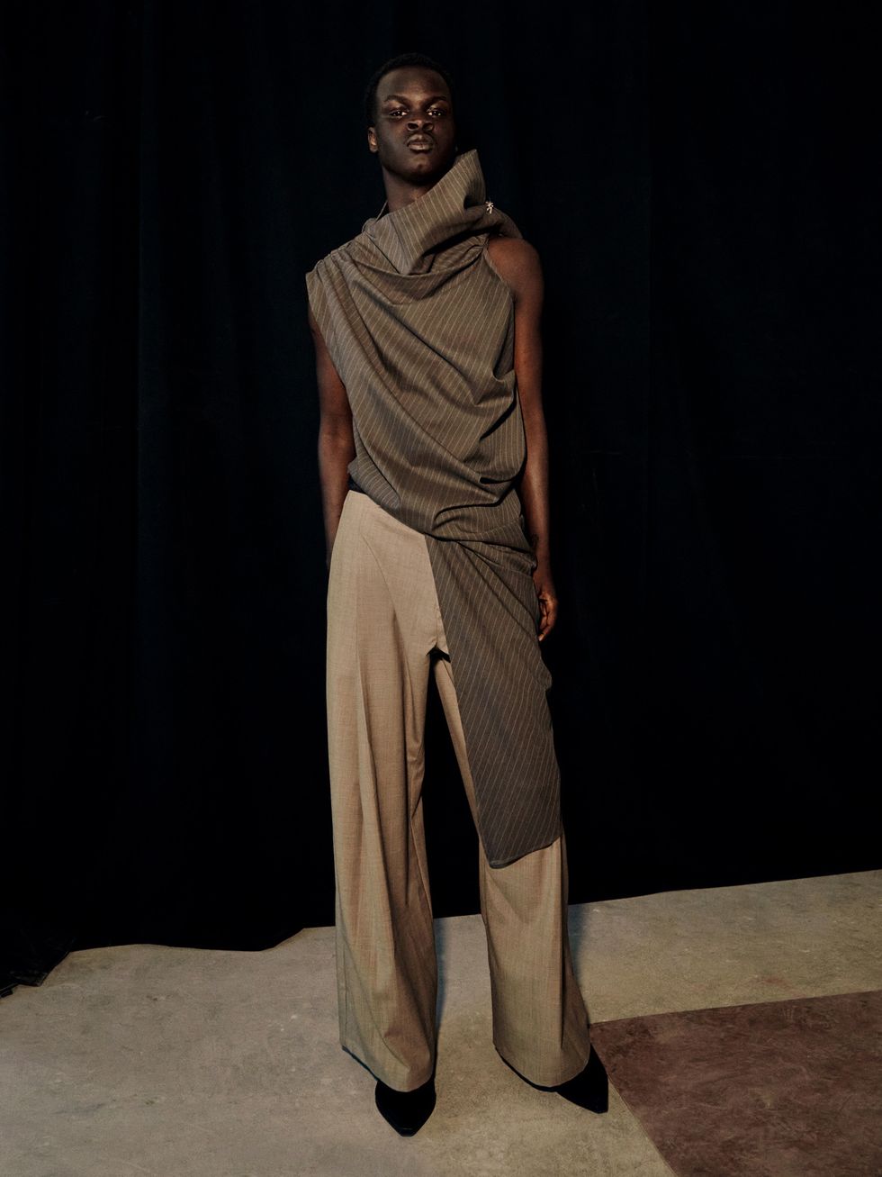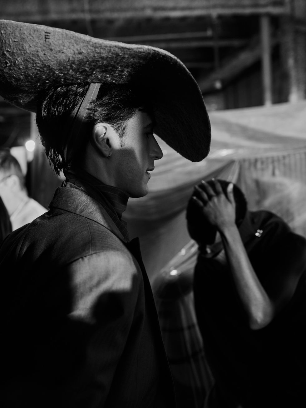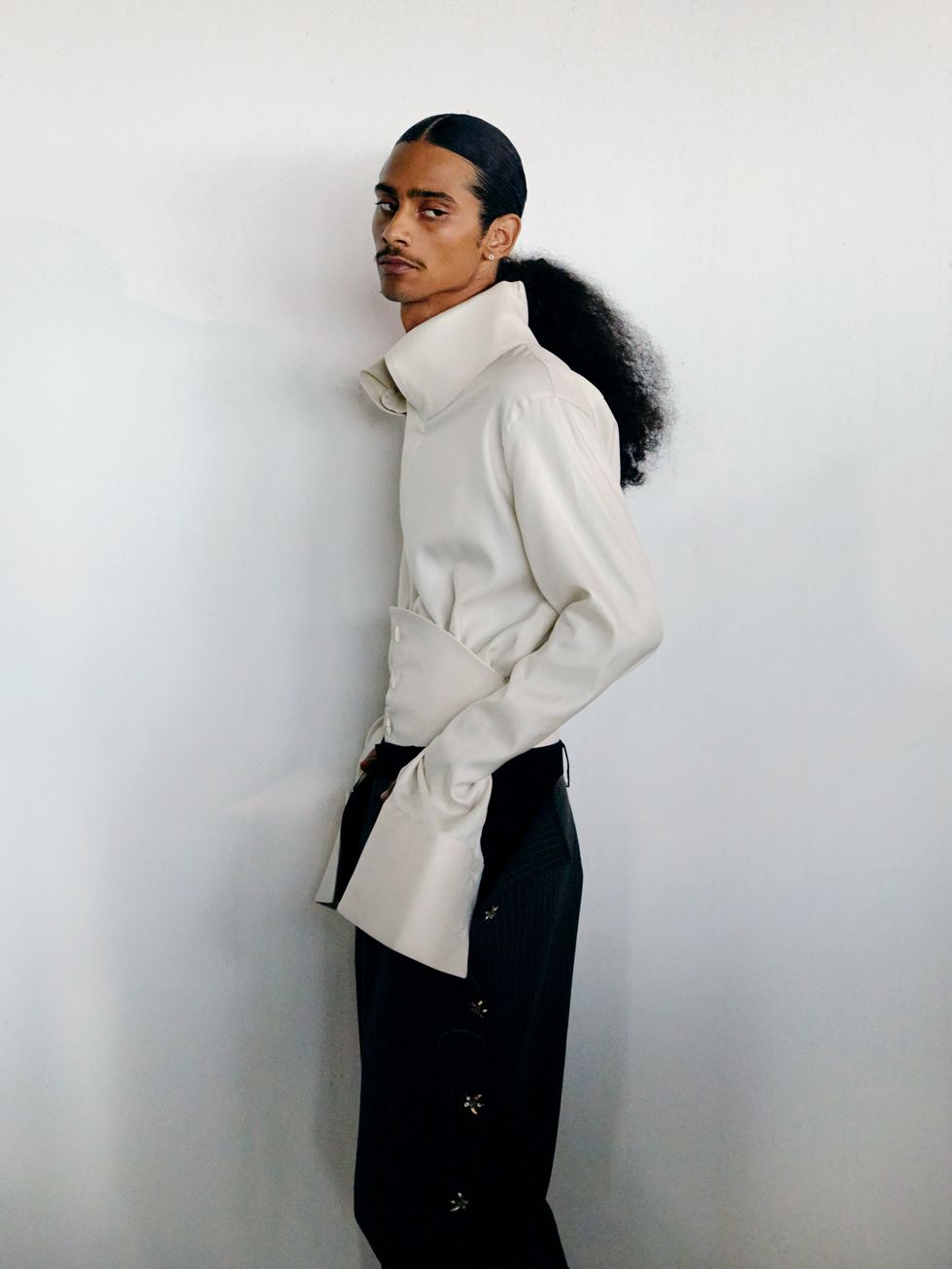 “This season was about increasing the level of craft that we put into each of the clothes,” Campillo told PAPER. A watchful eye on show day would have noticed a unique type of wrinkling present across many of the pieces. Each crevice and dip was handmade, pinned down and ironed to give it that distinctly crisp look. Pivoting the gaze down to the models’ feet — a new line of collaborative shoes with the Portuguese Footwear Association and Portuguese brand Mariano were resplendent in rich layers of goat hair, in equal-parts tawny and dark shades.