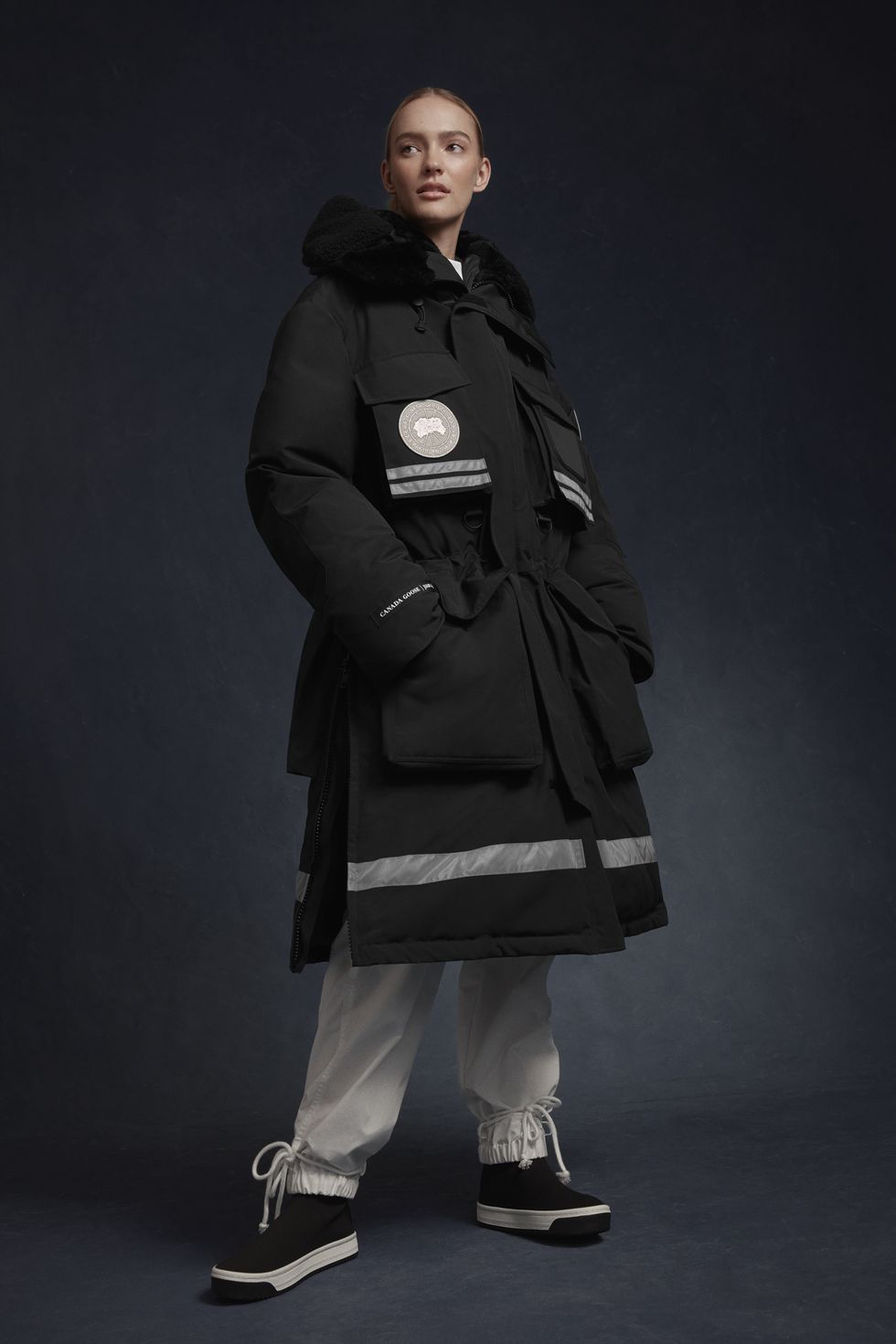 Now, just in time for colder weather, the full details of the collaboration have finally been revealed. The four-piece unisex capsule will consist of three of Canada Goose's iconic parka styles with the high fashion Juun.J treatment, including the Resolute 3-in-1, Snow Mantra, and Expedition. (Prices range from $1,595 to $1,895.) The fourth piece is a Merino wool hoodie called the Ashcroft, which retails for $650.