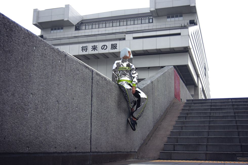 Leaning into their streetwear heritage and gaming inspiration, Neo-Ex features a variety of interesting silhouettes from and Mylar-like trackpants to a ginormous puffer coat. Decked out in neon greens, hazard yellows, and bold graphic text-based prints, the collection does very much look look the part of video game character turned Instagram influencer.