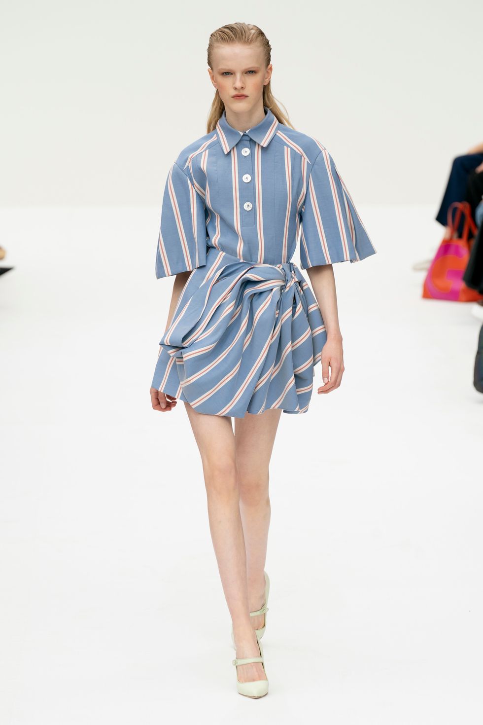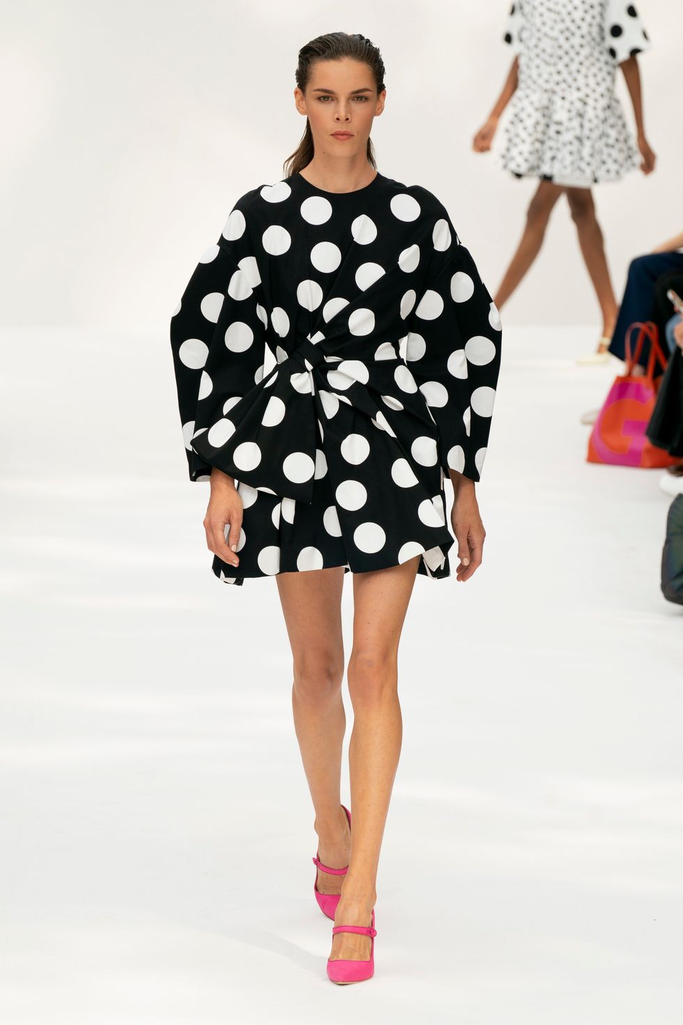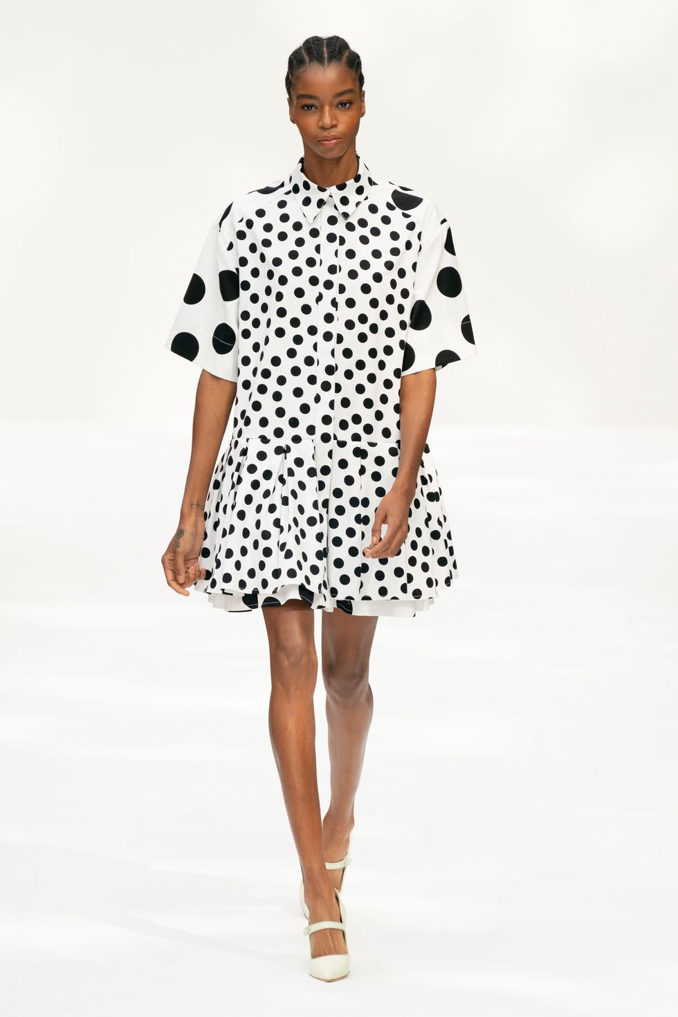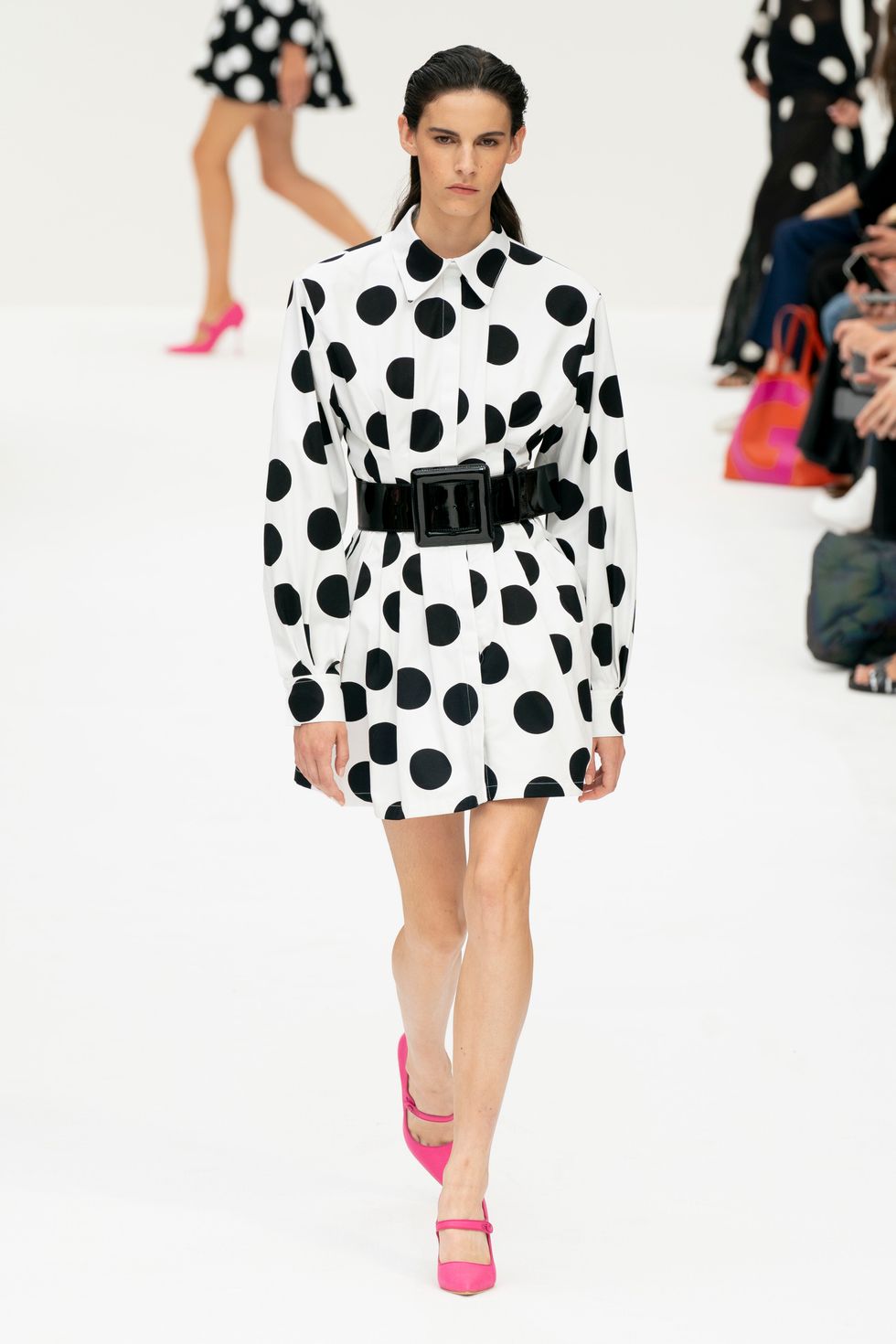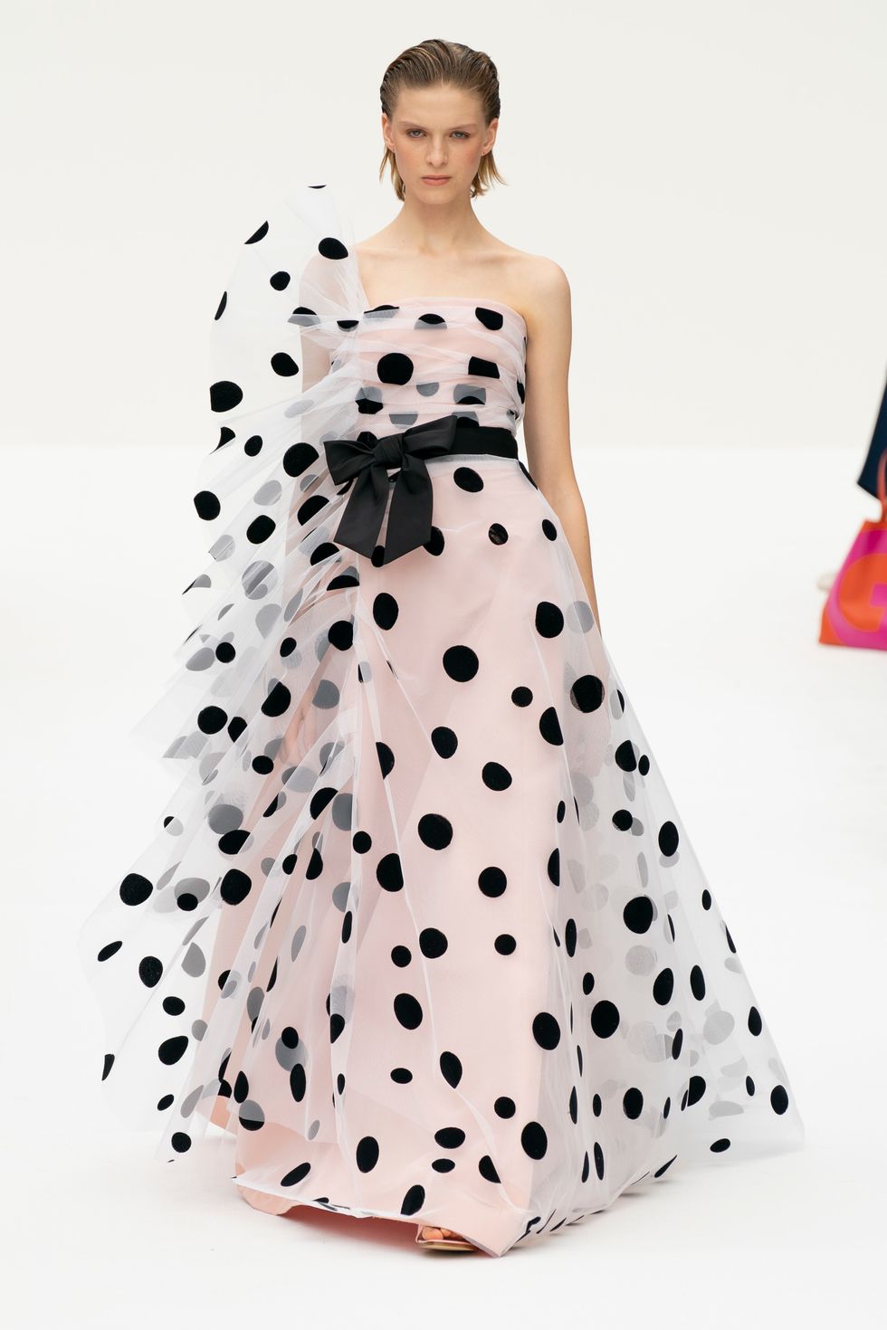 Gordon's playful use of polka-dots still managed to look luxurious and fresh. The best example of this was a shirt dress with polka-dots applied in different proportions and scales.