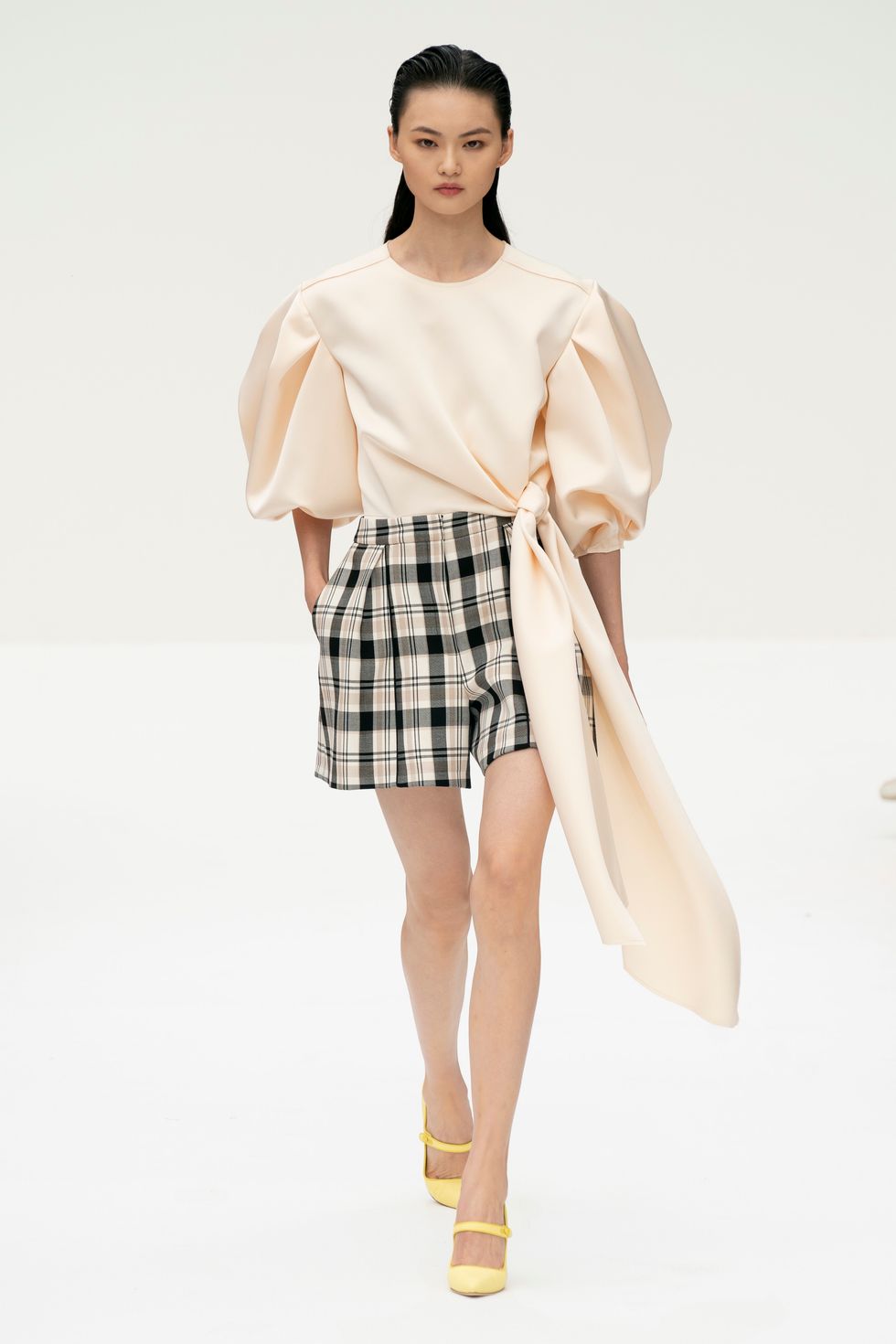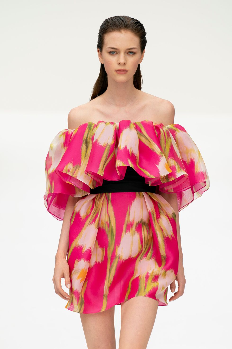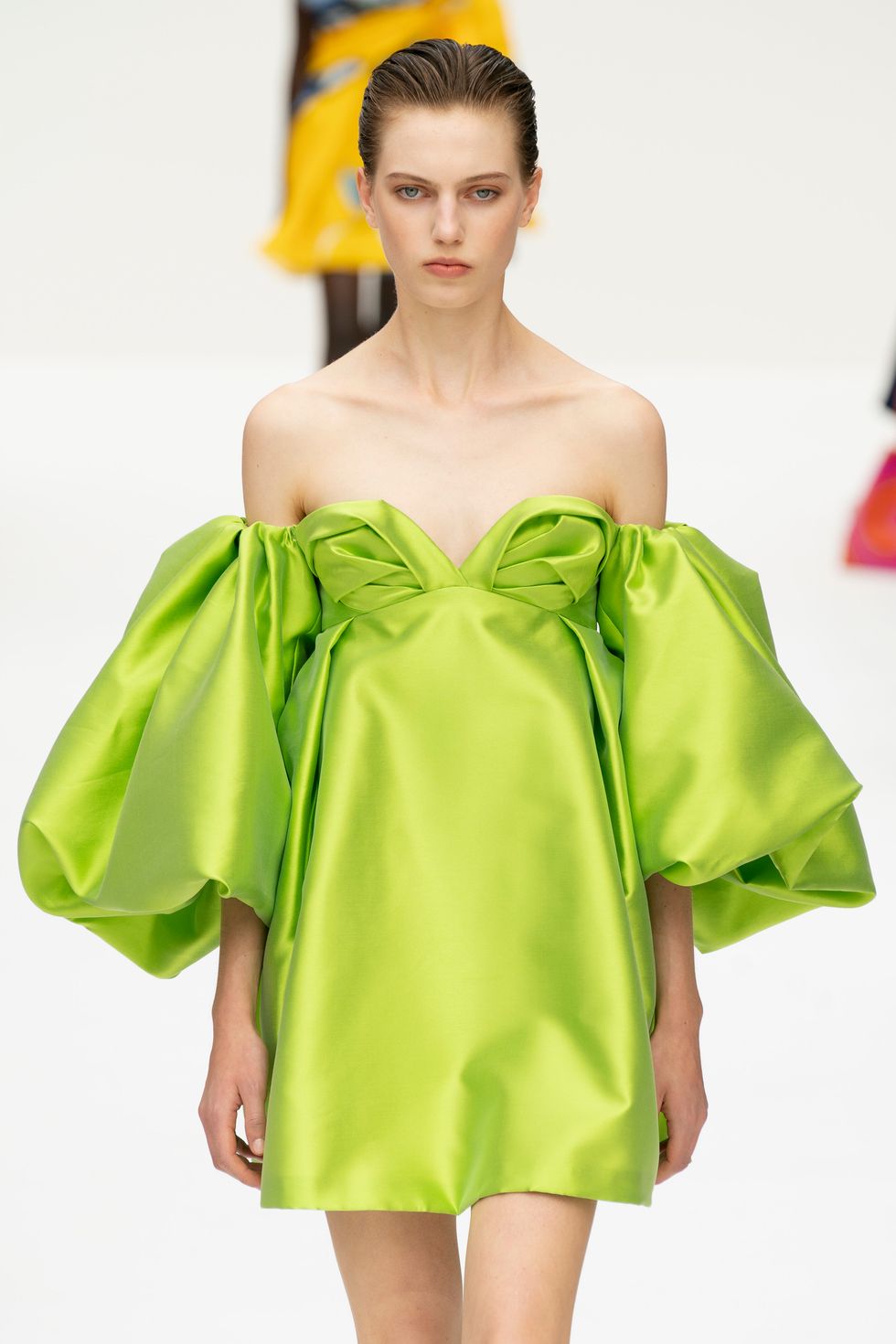 Gordon approached cocktail attire with a series of off-the-shoulder minidresses in big, poofy sleeves or ruffled bodices. They're fun, flirty, and unmistakably spring.