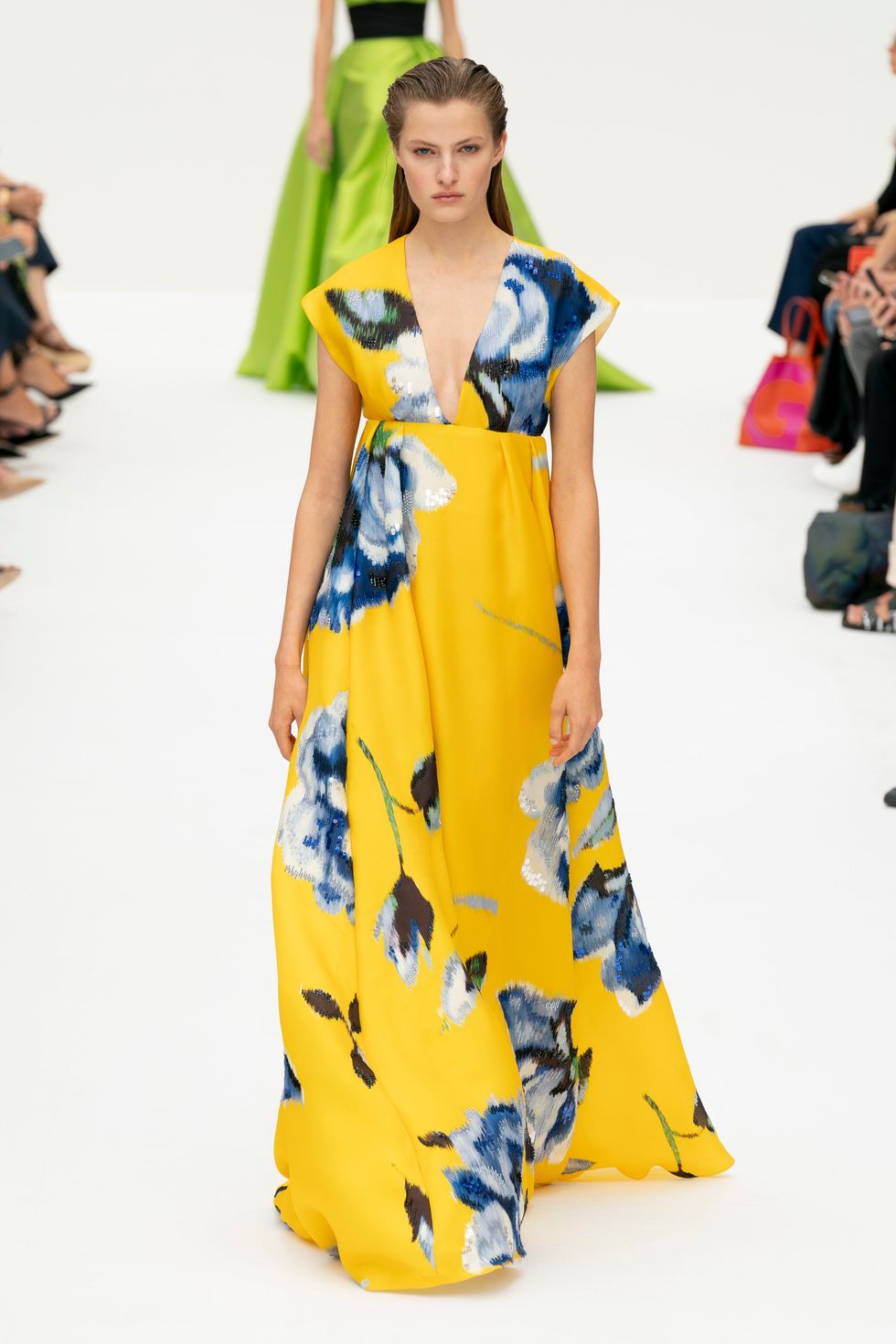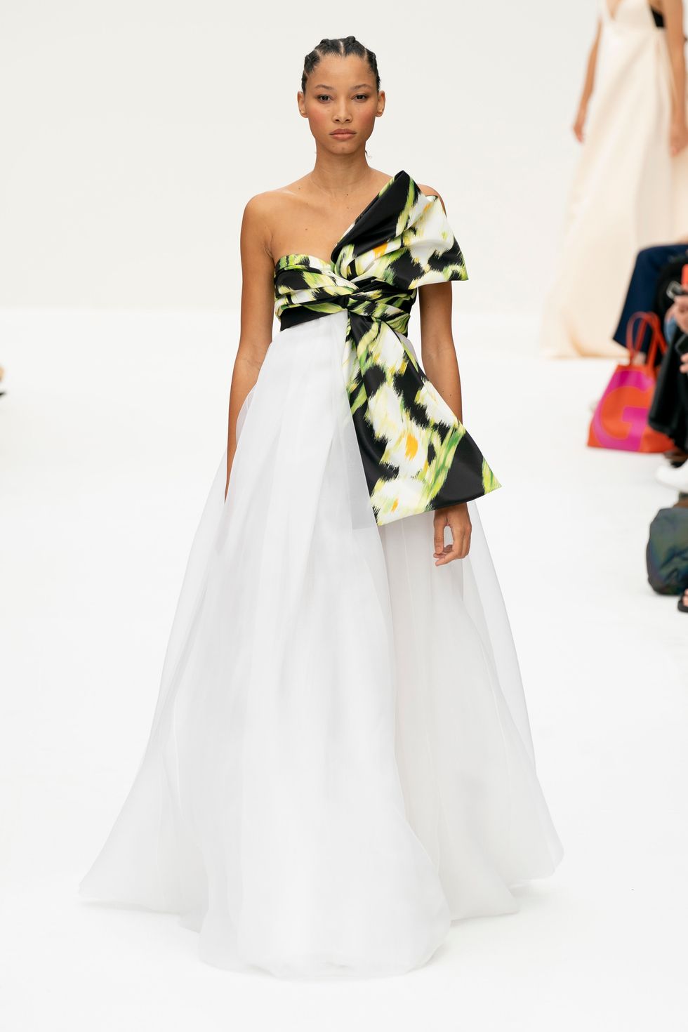For Wes Gordon's third runway collection at Carolina Herrera, he incorporated some familiar design signatures longtime fans of the house will recognize. Crisp white shirts were paired with floor-length skirts in the first couple of looks (a classic Herrera silhouette that the founder herself sports often.) Gordon's sensibility came through in the beautiful, blown up abstract floral prints inspired by the Californian wild flower superbloom. Against the blank canvas of the white runway, these vibrant looks were captivating and made for instant social media fodder. After sending out a series of polished daytime looks, Gordon concluded the show with more of the evening gowns and cocktail dresses the brand is known for. Here's everything else to know about the Spring 2020 collection.