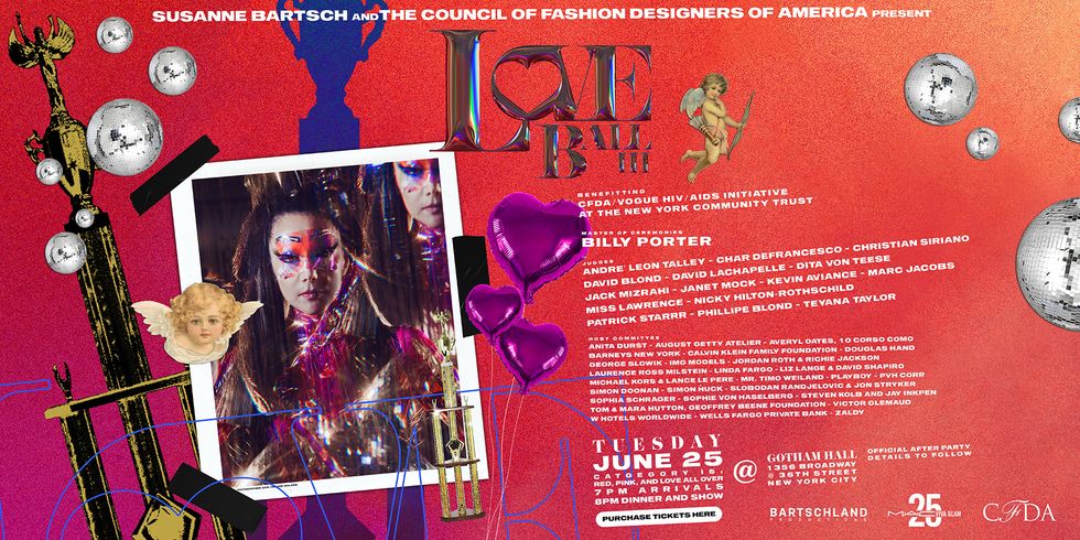 Now, for the 30th anniversary of the iconic night, Susanne Bartsch is throwing Love Ball III at Gotham Hall. The event will benefit the CFDA-Vogue Initiative/New York City AIDS Fund of The New York Community Trust. In true ball spirit, there is a legendary master of ceremonies for the evening, Pose's Billy Porter, and an all-star lineup of judges including Teyana Taylor, Janet Mock, and Marc Jacobs.