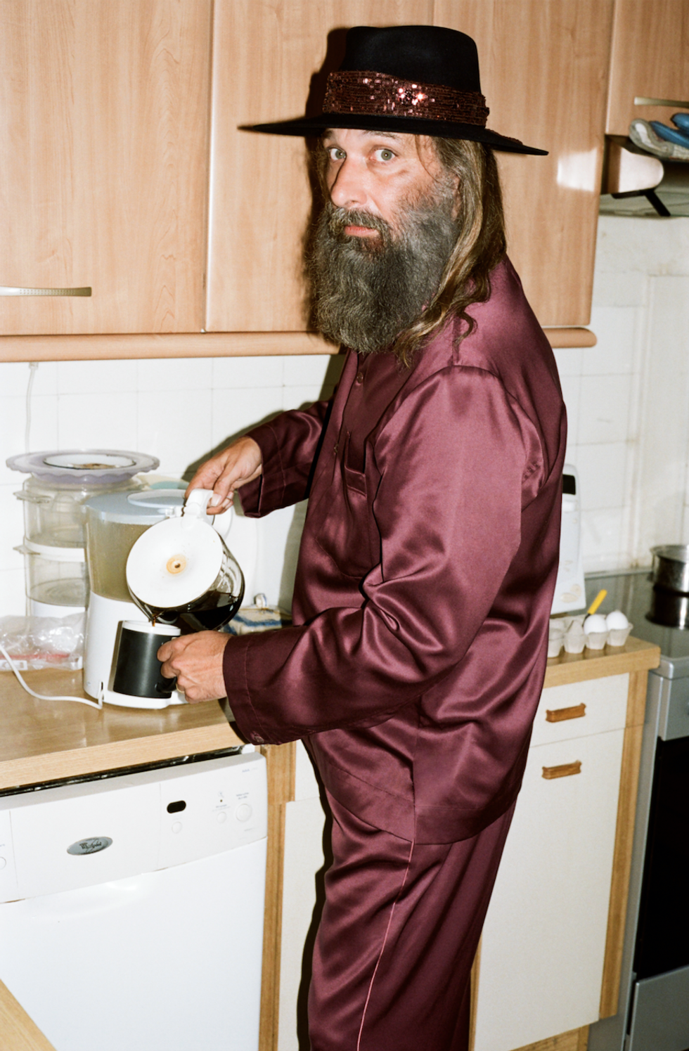 "We are long time fans of Sébastien Tellier's music, creativity, and iconic dressing," said Creative Director Christian Larson. "He truly embodies the CDLP world of style, character, and joie de vivre. Jonas Unger has an innate ability to capture characteristic figures through his lens. Here, he managed to document the collection in the perfect context while profiling Mr. Tellier in a natural environment. All while making everyday mundane chores all a bit more exciting while wearing HOME."