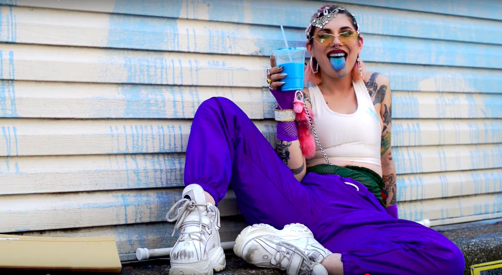 She taunts every misogynist, abuser and Internet troll who's ever called a woman a bitch in the new video for her reclamation anthem "Stupid Dumb Bitch." Rocking gloriously decade-confused cyber goth club kid meets early 2000's MTV star looks, styled by Whatever 21 founder Brian Whatever and experimental style upstart Griffin Hall, cecpooL satirizes every misogynistic trope in the book, modeling herself as sometimes-grotesque caricatures embodying the "deviant," "bad-girl" kinds of femininity that our society hates, taking their insults, and devouring them.