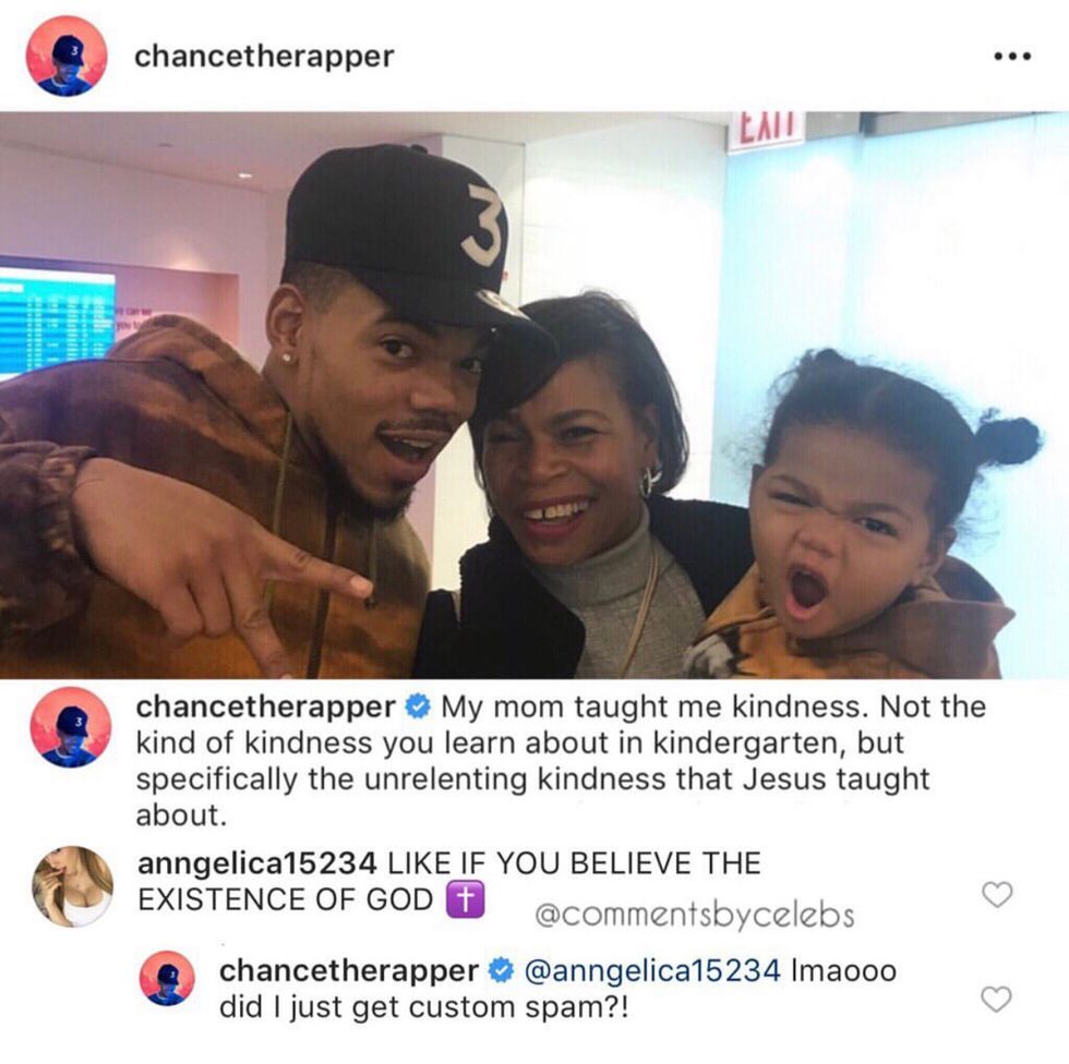 Chance the Rapper was seemingly flattered by this bot's attention to detail.