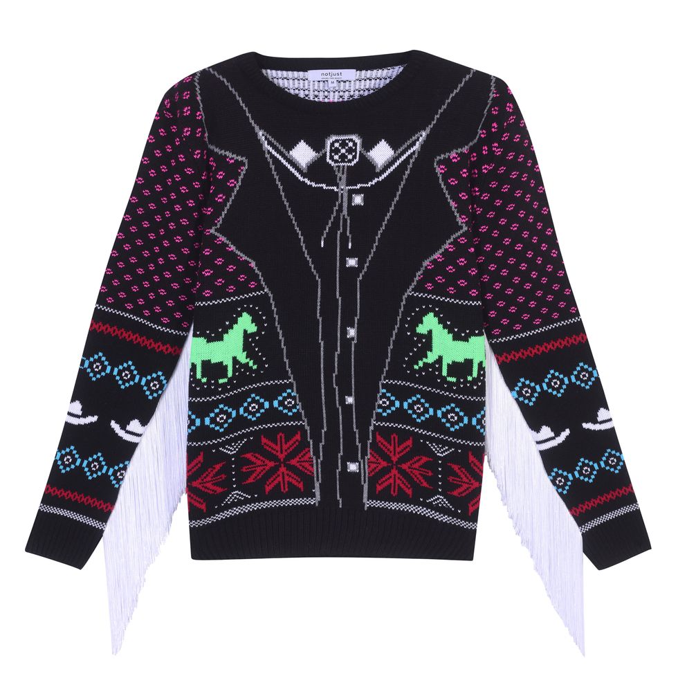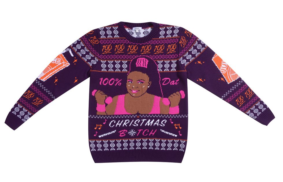 Are you a "Christmas Kween?" The pink JVN sweater is calling your name. Or are you more of "Dat Christmas B*tch?" Lizzo's version (complete with DNA strands and flutes) may be just the pick. We're partial to the fringed Lil X Mas/Old Town Cowboy sweater, but the avocado one is also sure to be a big hit.