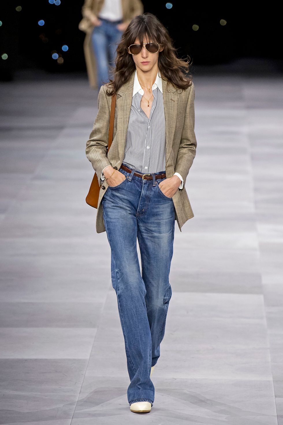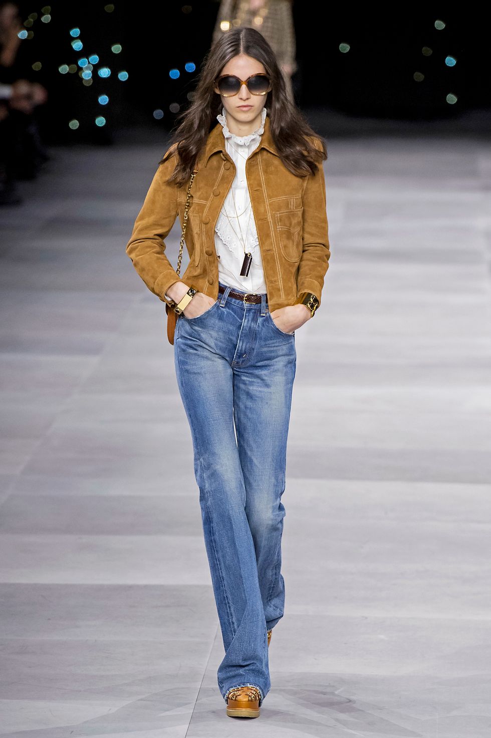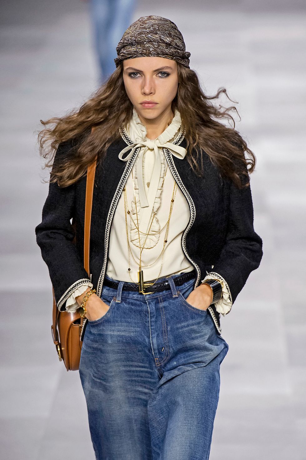 A continuation of the '70s bourgeois French girl look he presented last season, Celine Artistic Director Hedi Slimane doubled down on practical daywear, easy separates and no-fuss blouses and scarf dresses for Spring 2020. There's also a bigger emphasis on washed bootcut denim, which isn't particularly groundbreaking but acts as a nod to the brand's '70s roots. The casual mood of the collection (plain white sneakers, aviator sunnies) show Slimane's mastery of merchandising and category dressing, a skill that he implemented at Saint Laurent with much success. Here's everything else you need to know about the collection.