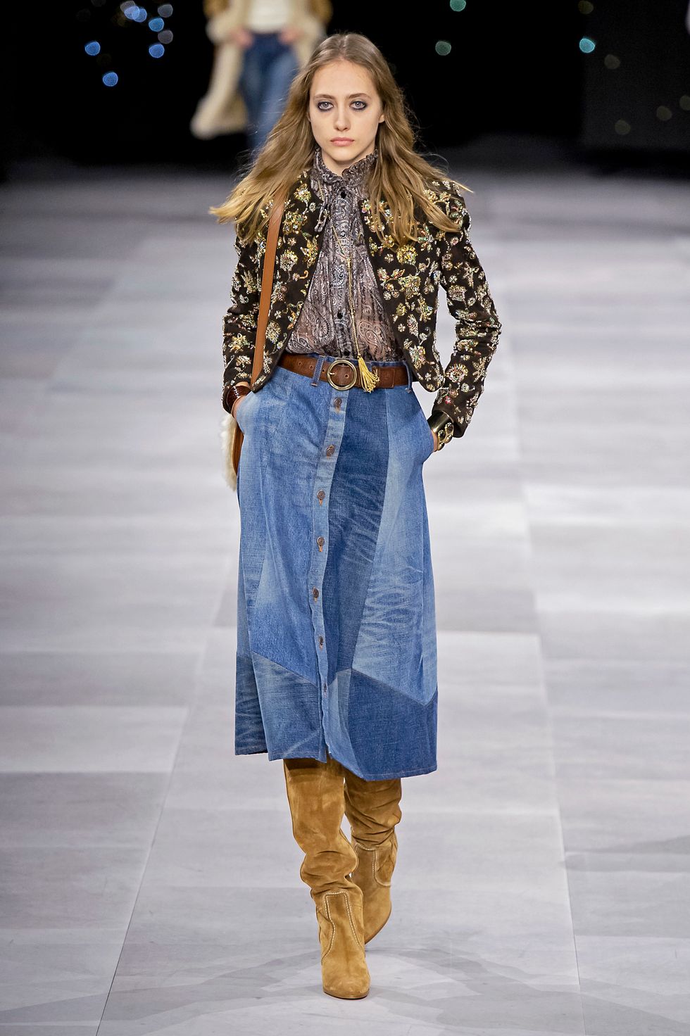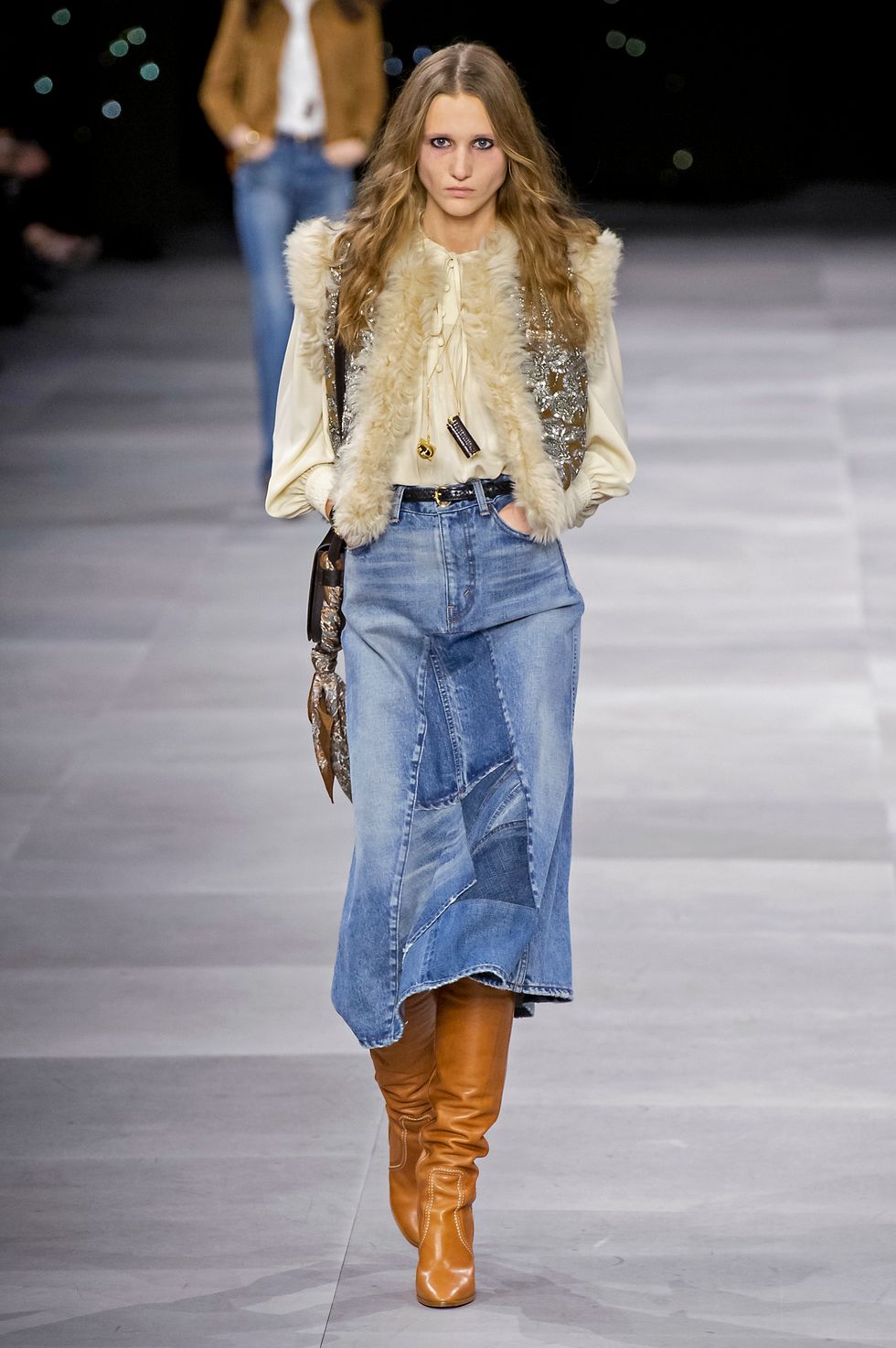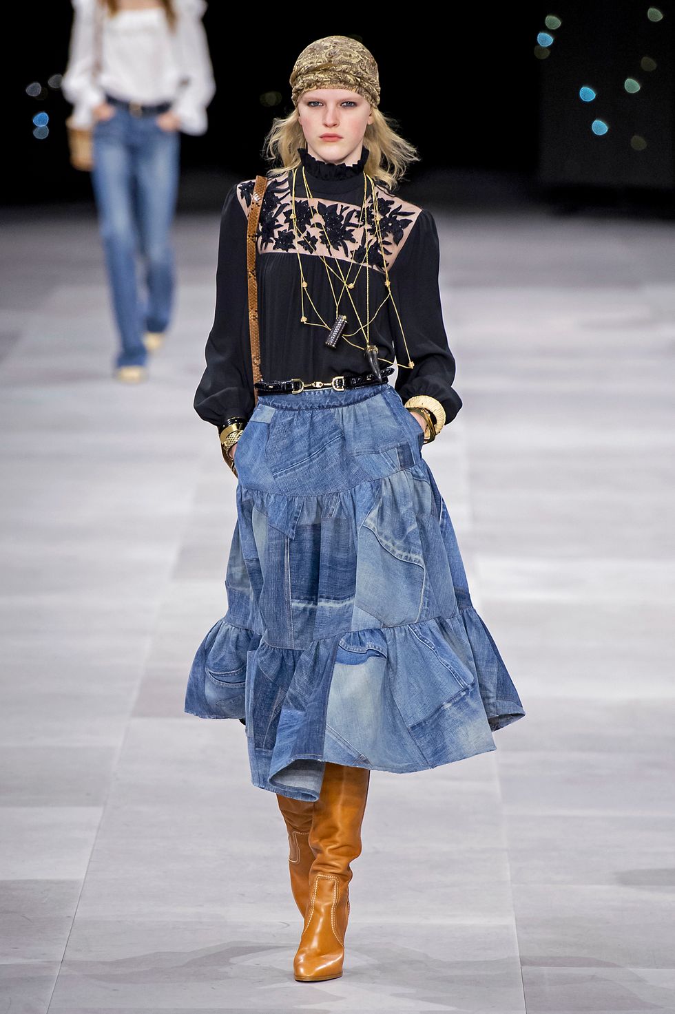 If it wasn't a jean, it was a full denim A-line skirt in patchwork construction that reached below the knee.