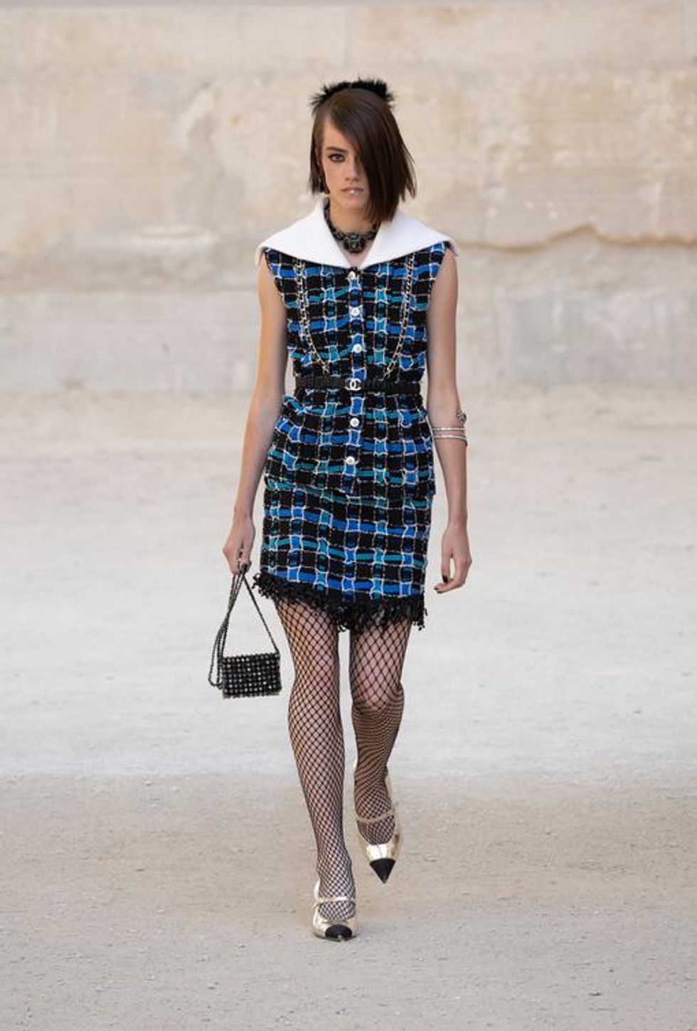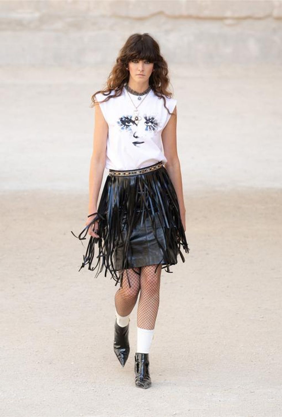 Chanel might not be the first name you associate with lip piercings, fishnet stockings and graphic concert tees, but the brand fully embraced these elements and more in their Cruise 2022 show today.