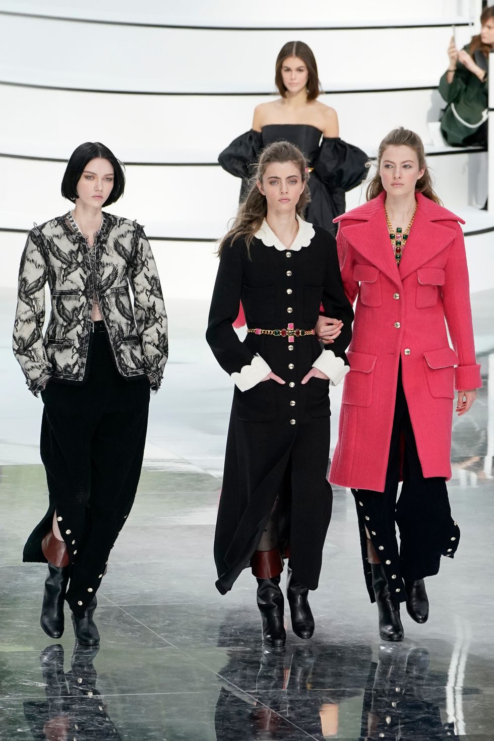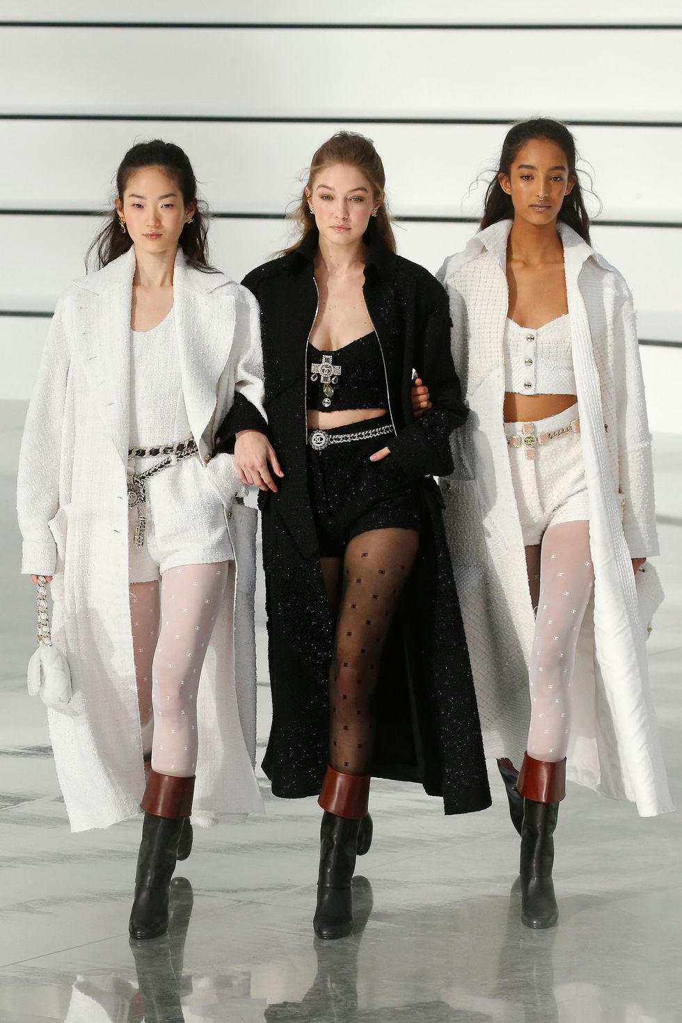 Models came out in groups, with some like Gigi Hadid interlocking arms with her fellow Chanel girls as if they were on their way to brunch or spending a day shopping in SoHo. It was very much Sex and the City meets rue Cambon. See, below, for more photos from Chanel Fall 2020.