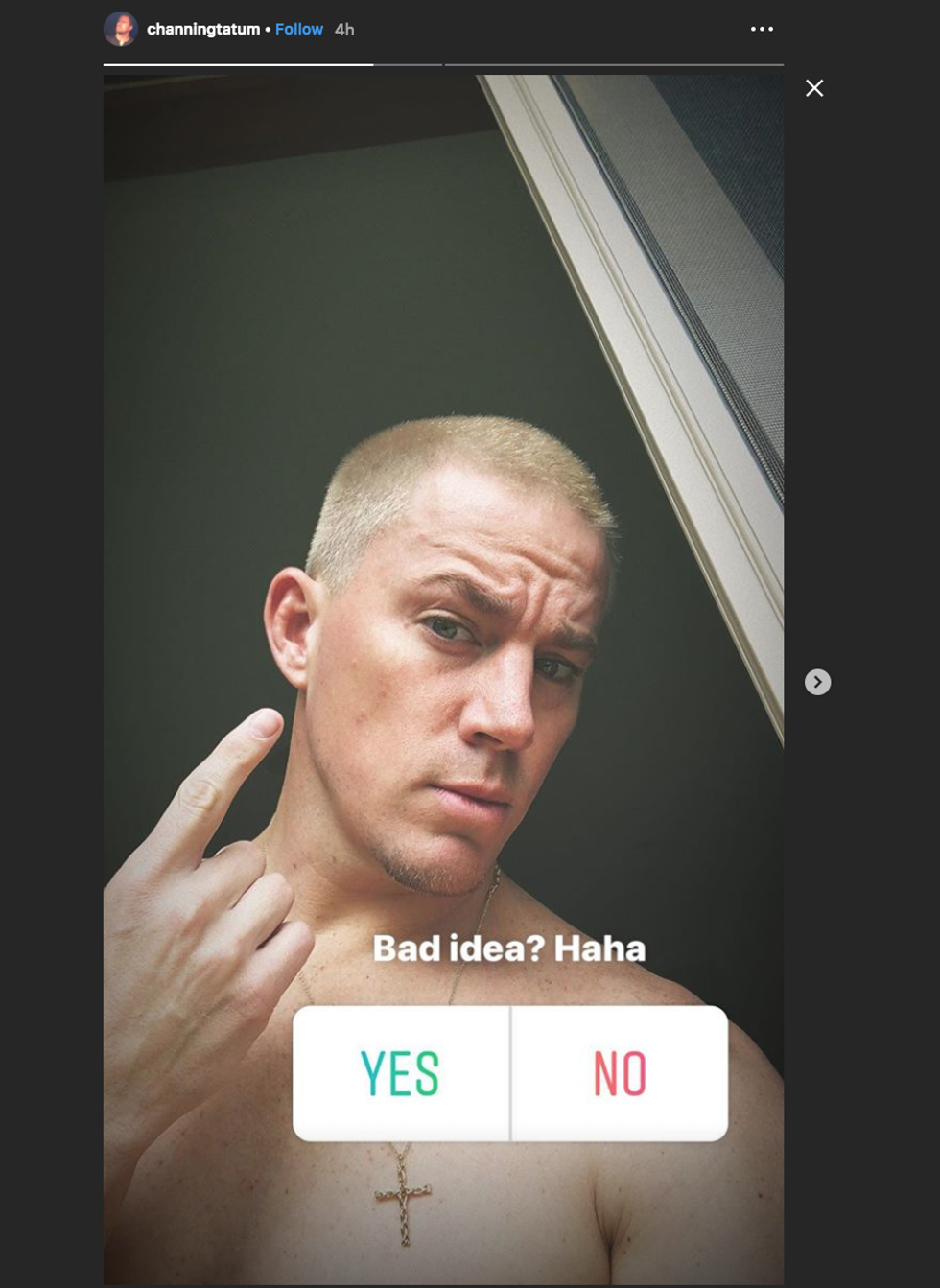 The actor took to Instagram to show off his new buzz cut, seeking approval from fans (as one does). "Bad idea?" he questioned, including a poll for followers to vote on. "Well, bad ideas are sort of my thing," he added.