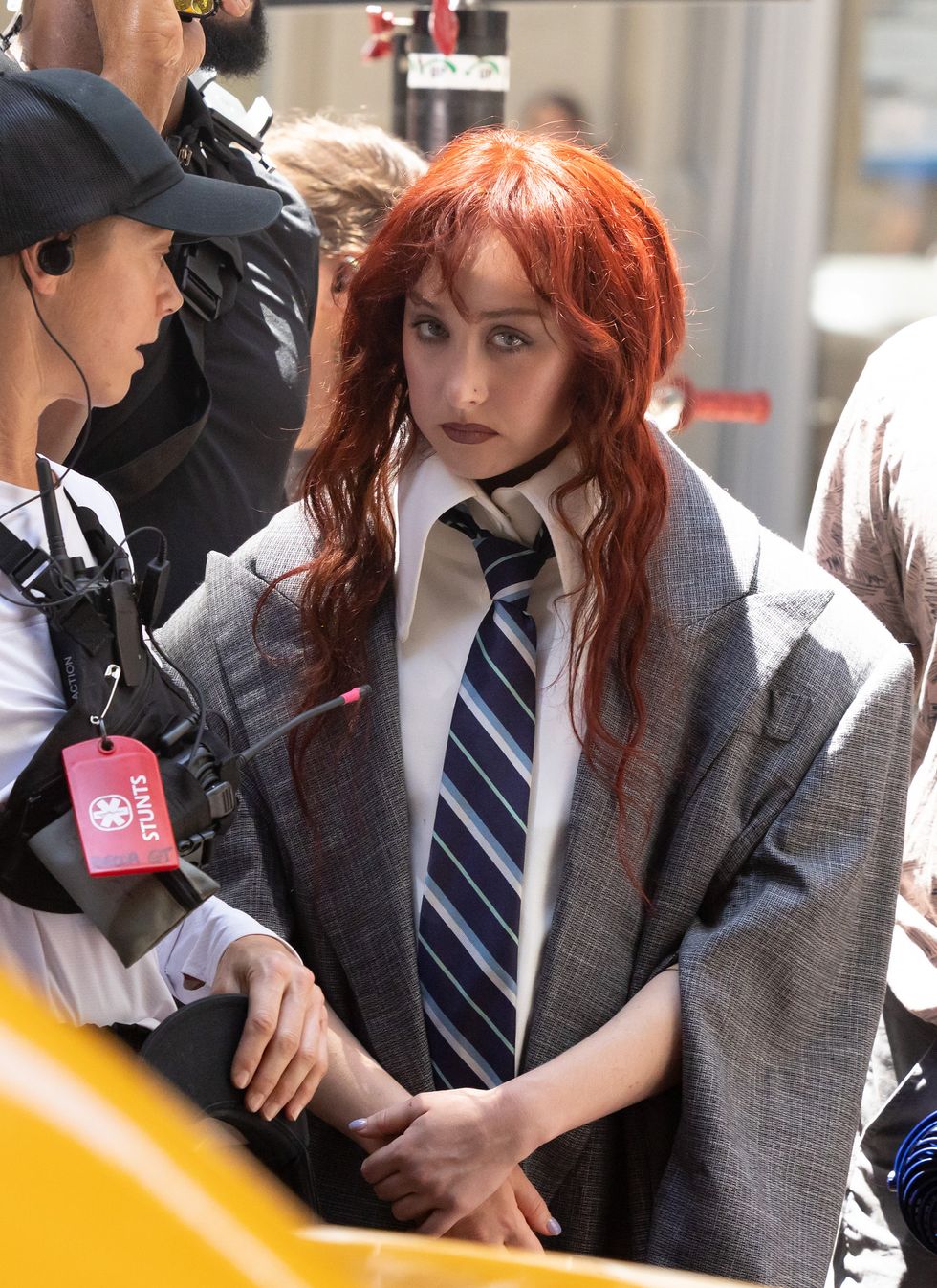 I snagged the images on Getty, where others in the same set show off a production crew flanking pop’s latest superstar. While she hasn’t officially announced new music since “The Giver” debuted at #5 on the Billboard Hot 100, all signs point to this being the music video for something or other.