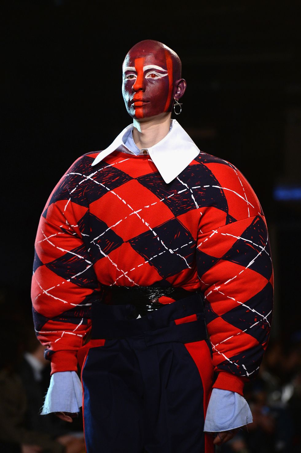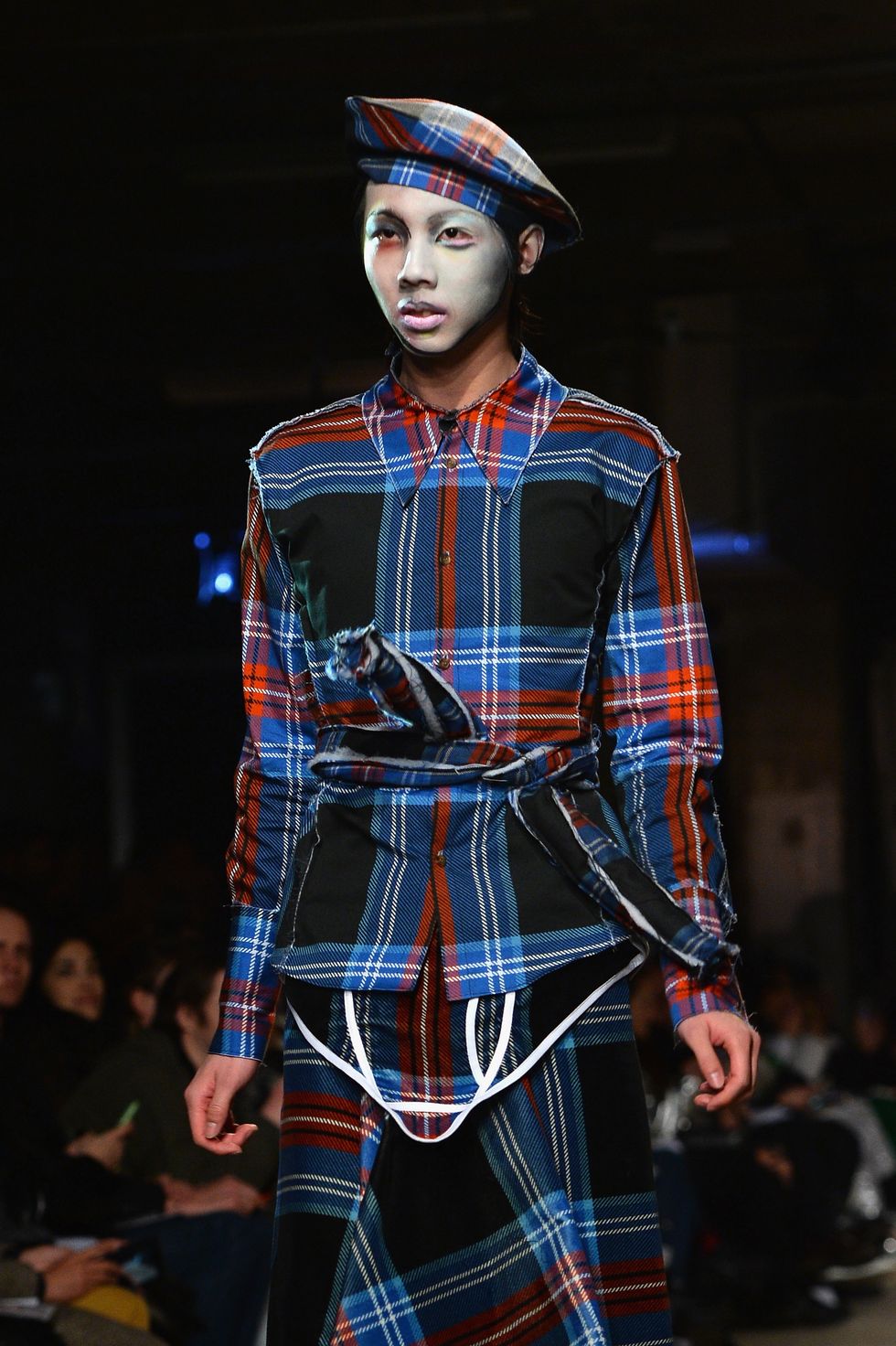 Talking with Charles Jeffrey about his work is not unlike those long, winding conversations you get lost in with some stranger at the after-afterparty. A few drinks in mixed with extreme sleep depravation, sentences become stories and you find yourself connecting the dots about life with no inhibition. It's all a bit scattered, but inspiring nonetheless, like you've discovered the truth in a sea of hazy, haphazard 4 a.m. thoughts.