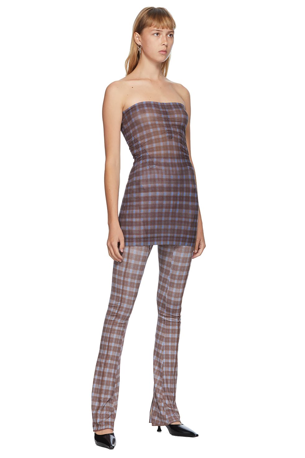 Today, the British label welcomes an exclusive capsule collection with SSENSE, the Canada-based luxury retailer, and it exudes Knowles' claim-to-fame sensual look. Among the 7-piece range, the brand's sought-after Coli and Beha dresses receive updates in new check prints, while statement-making flared leggings and utilitarian silk dresses underscore the label's commitment to building a contemporary wardrobe for women.