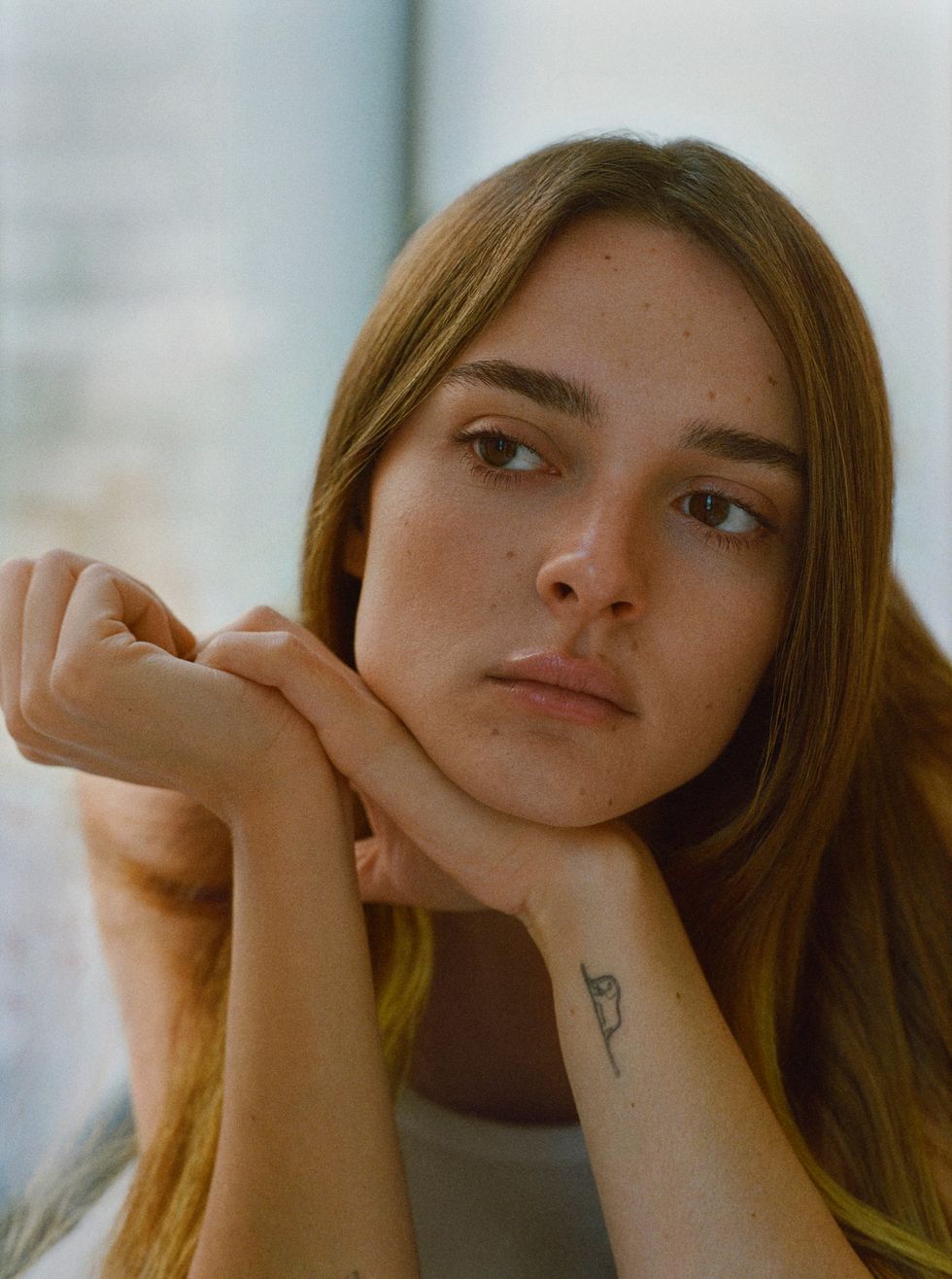 Lawrence has always gravitated towards sad music. Her playlists are filled with Bon Iver, Elliott Smith and Jeff Buckley. “All I listen to is sad music, no matter what state I’m in,” she laughs. “My pre-show playlist was 90 percent sad music, and my manager was like, ‘You’re supposed to hype people up, not make them cry. '"But her inspirations don’t stop with sad men. She’s equally drawn to strong women redefining pop, such as Taylor Swift, Olivia Rodrigo and Sabrina Carpenter, just to name a few. She respects their individuality and the way their musical style is instantly recognizable. On Somewhere her influences come through. She collaborated with close friend Gracie Abrams on Ophelia, a track born from their quick friendship during an effortless writing session. She also worked with Ben Gibbard of Death Cab for Cutie, a bucket-list collaboration.