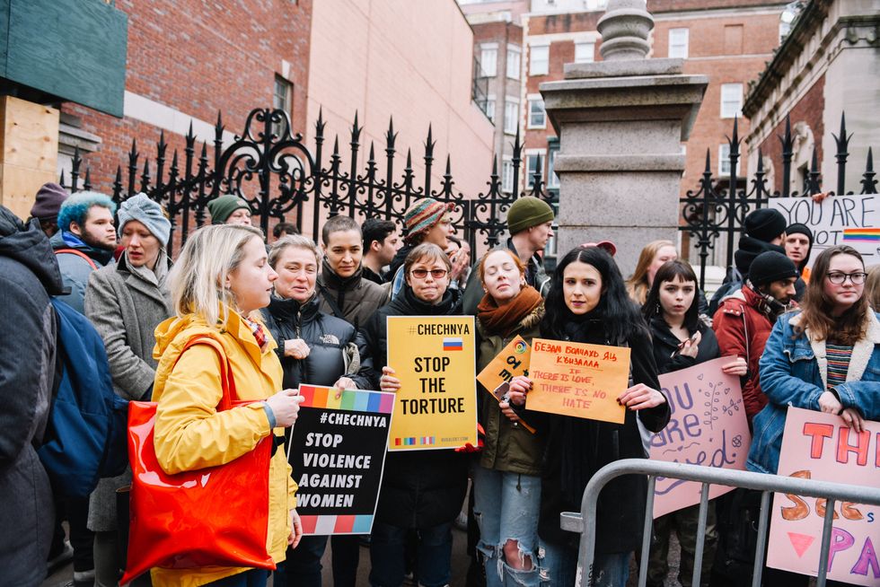 A direct action held last week by nonviolent queer advocacy group Voices4 aimed to put pressure on Russian government for the ongoing violence against queer people in Chechnya. The organization staged a peaceful protest at the Russian Consulate in New York, speaking about the reported 100+ Chechens murdered since December 2016, who are suspected to be part of Russia's "gay purge." The Russian LGBT Network confirmed last week that about 40 LGBTQIA+ people have been imprisoned and at least 2 people murdered since December 2018.