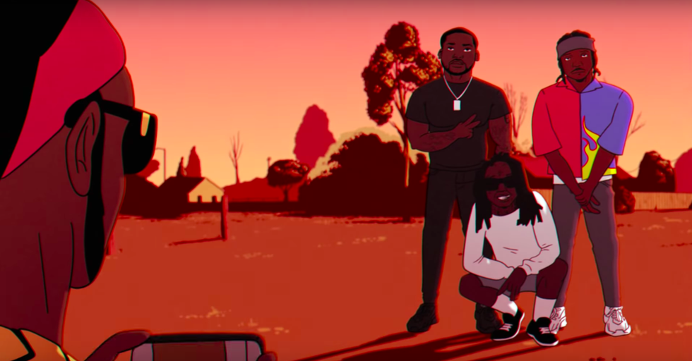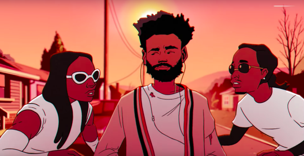 Childish Gambino just dropped his "Feels Like Summer" music video, and it's unlike anything you've ever seen. The video, which is purely animated cartoons, features cameos from over 50 iconic musicians and personalities who also belong in the African-American and POC community. This not only includes strong female icons like Beyoncé, Michelle Obama, Whitney Houston, and Oprah, but also problematic faves like Kanye West, and Chris Brown.