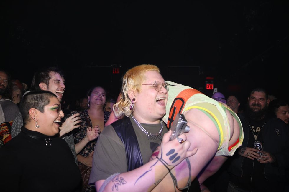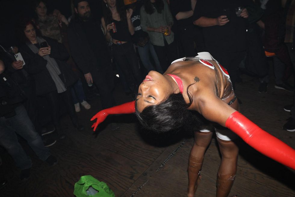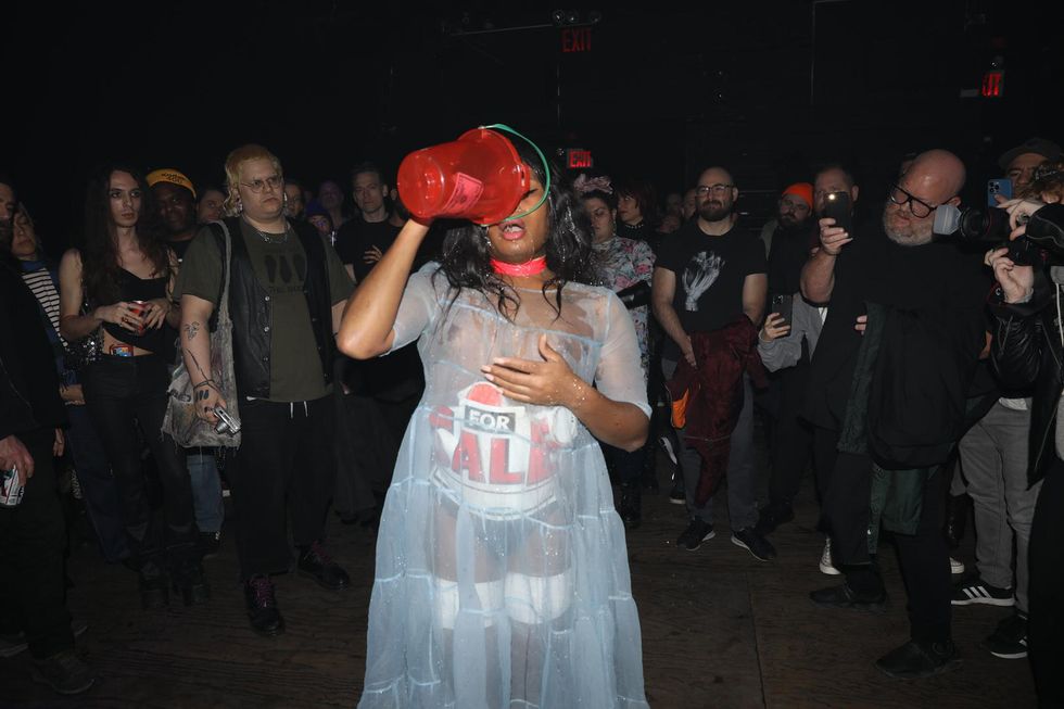 So if you ever get the chance to experience the raucous intensity of her live shows, it's not to be missed. For her latest, Christeene and "Her Fukkin Band," along with supporting act Keioui, brought their show to Brooklyn's Saint Vitus Bar for a night of sweaty chaos, debauchery and balls. And you know it must have been a good party if Michèle Lamy was there.