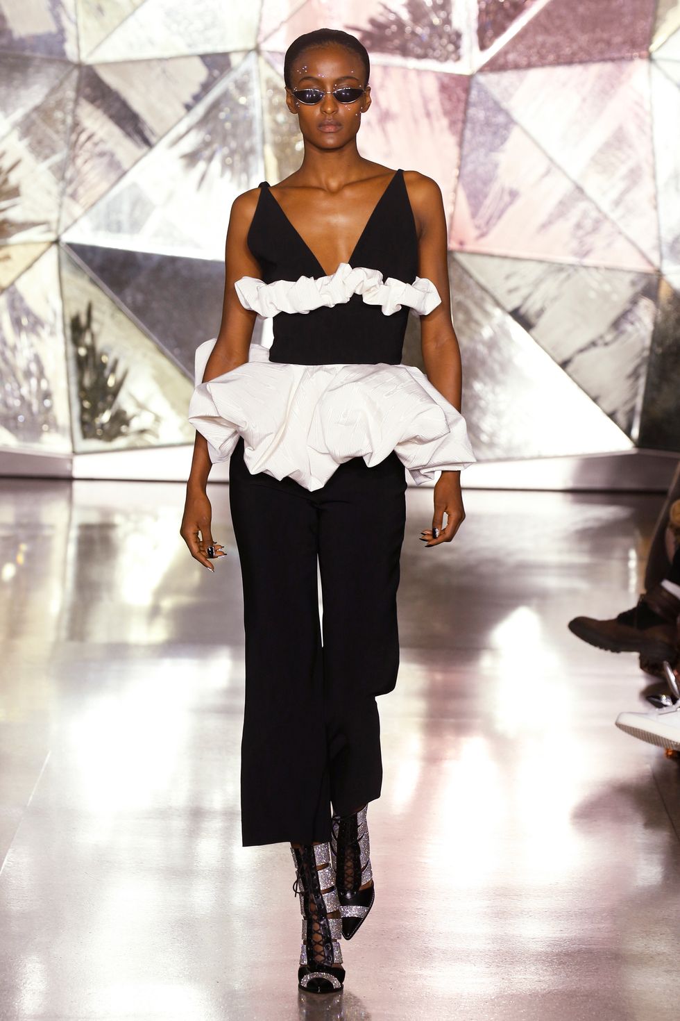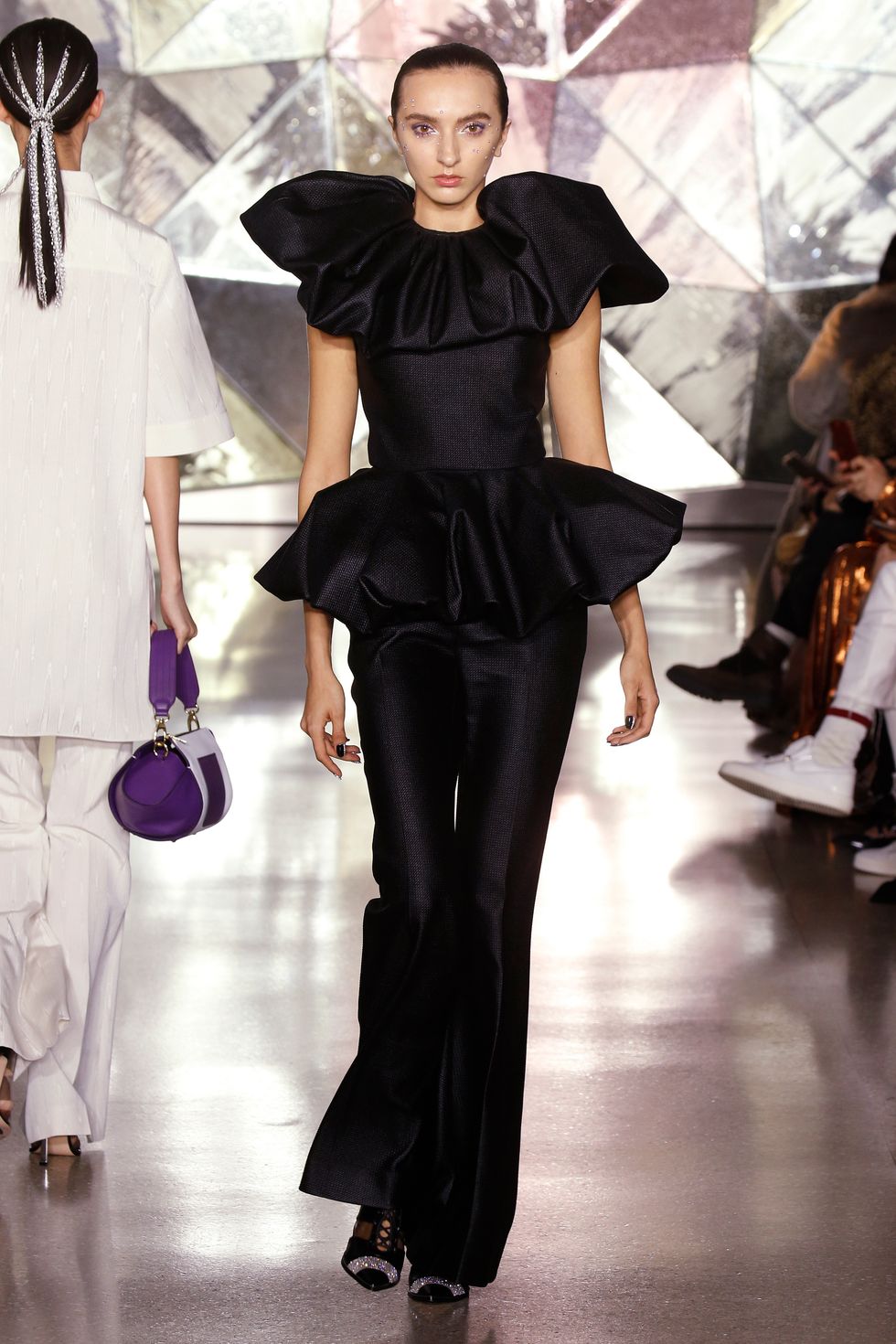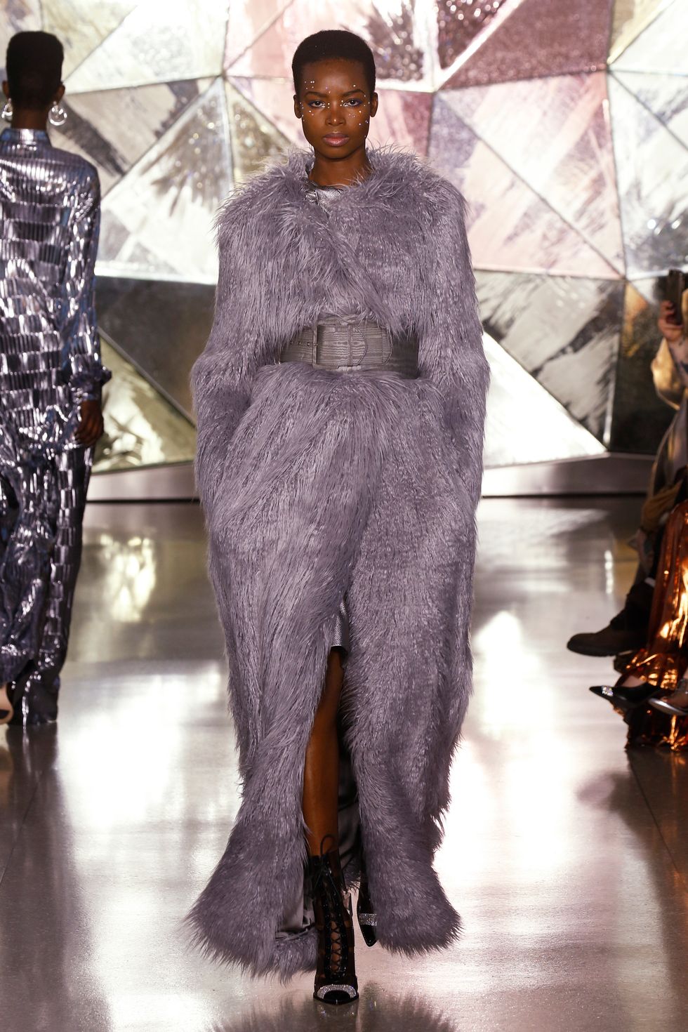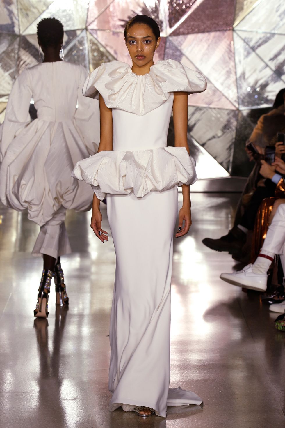 When Ashley Graham closed the show wearing a head-to-toe sheer crystal covered dress, the front row went wild. This particular moment felt like the pinnacle of what Siriano's collection was about — and it also juxtaposed nicely with the crystal studded makeup.
